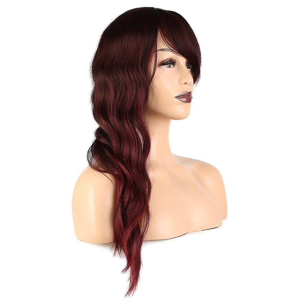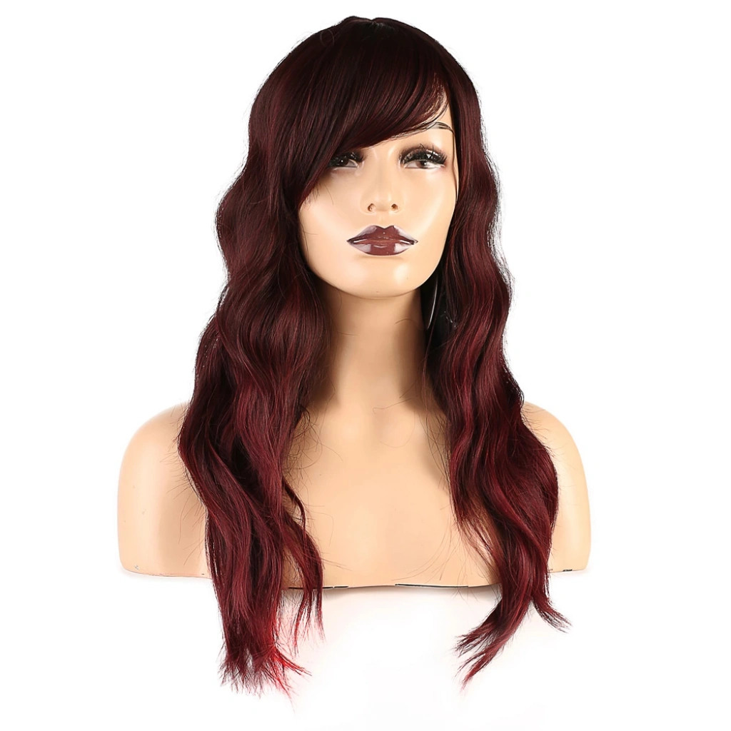 Dalgalı Perçemli Uzun Fiber Sentetik Peruk - Kızıl