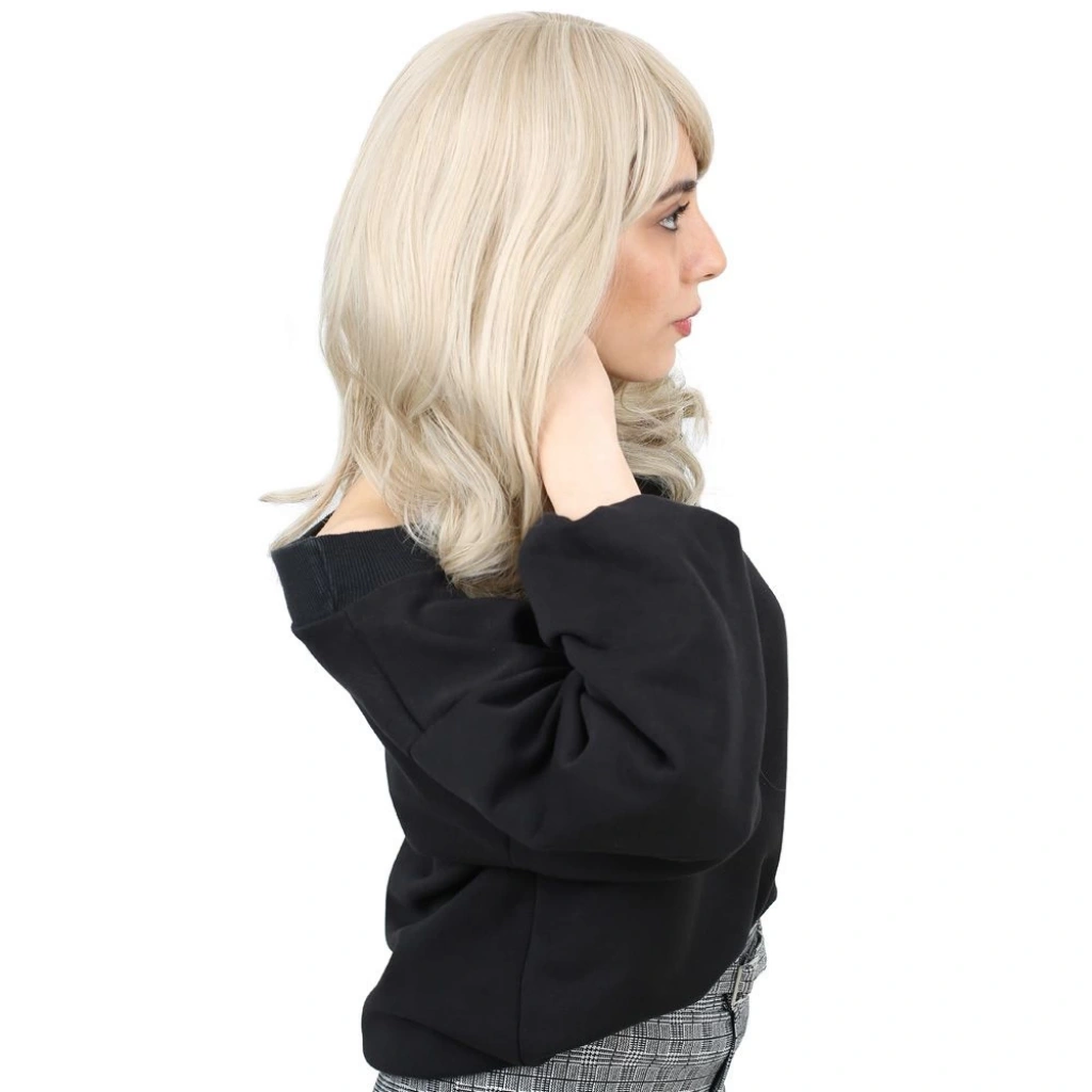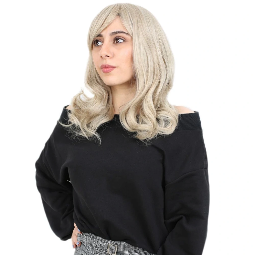Dalgalı Perçemli Fiber Sentetik Orta Boy Peruk - Platin
