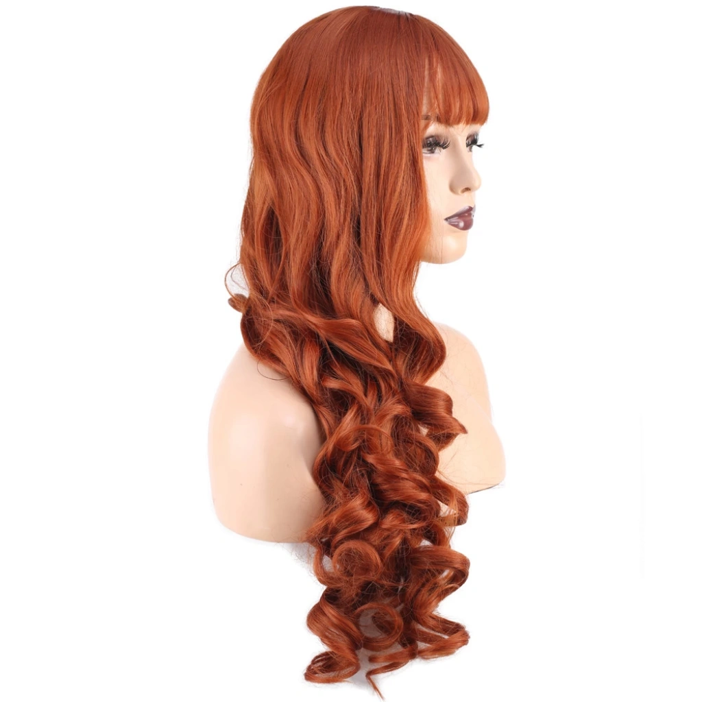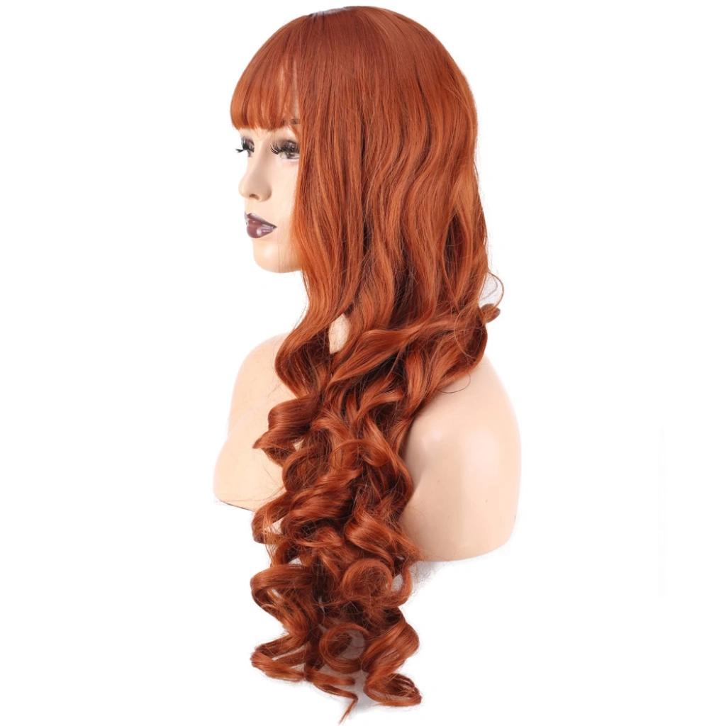 Dalgalı Perçemli Uzun Fiber Sentetik Peruk - Bakır