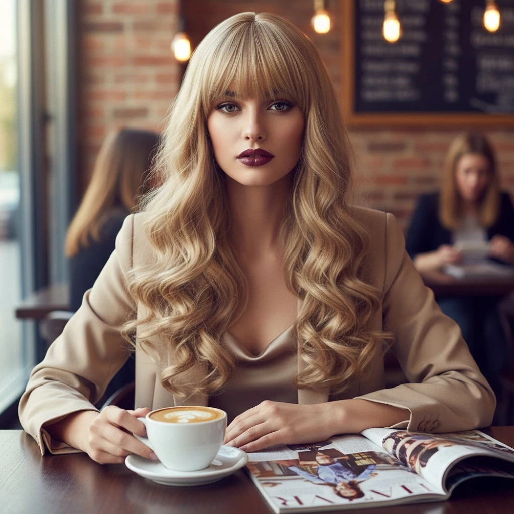 Dalgalı Perçemli Fiber Sentetik Orta Boy Peruk - Balköpüğü Platin Röfleli