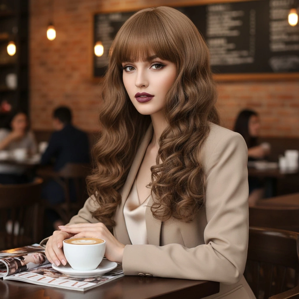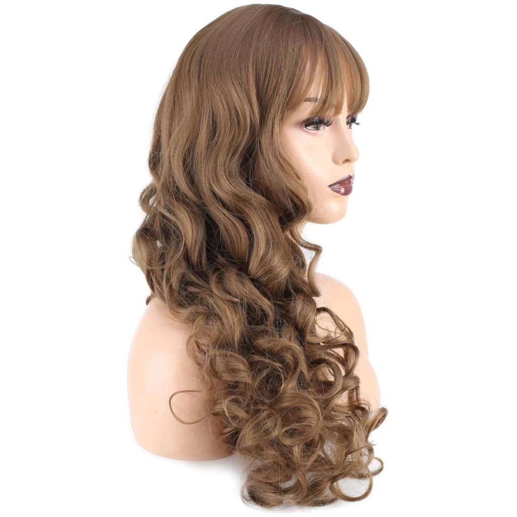 Dalgalı Perçemli Uzun Fiber Sentetik Peruk - Koyu Kumral