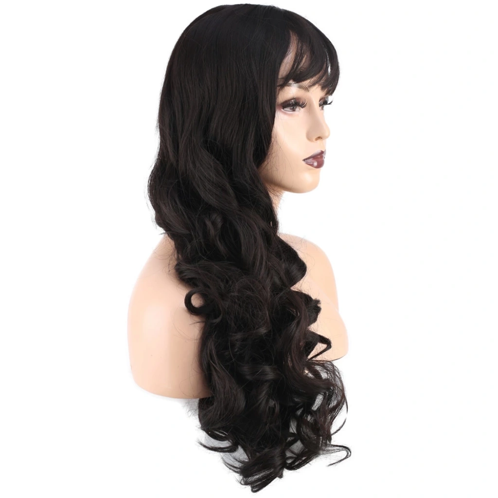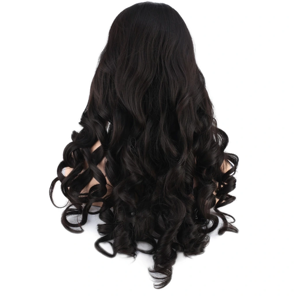 Dalgalı Perçemli Uzun Fiber Sentetik Peruk - Koyu Kahve
