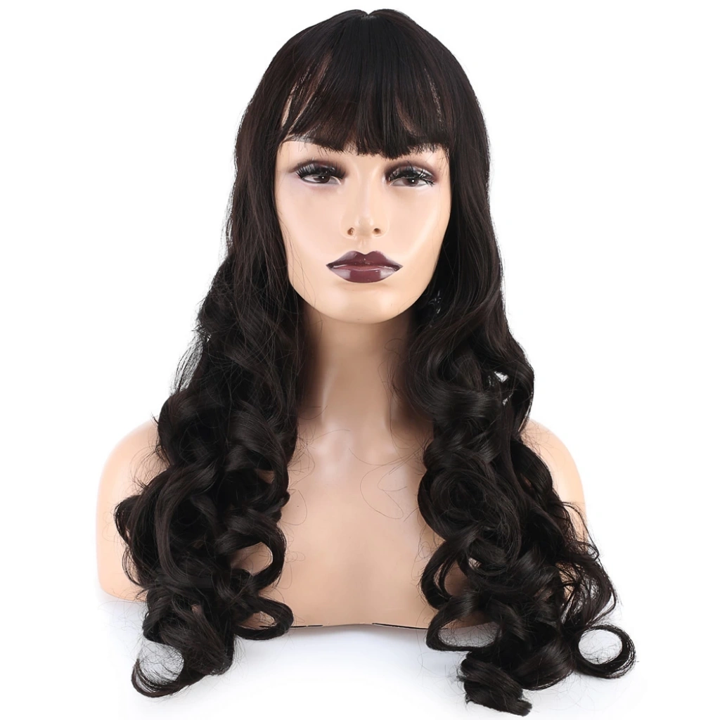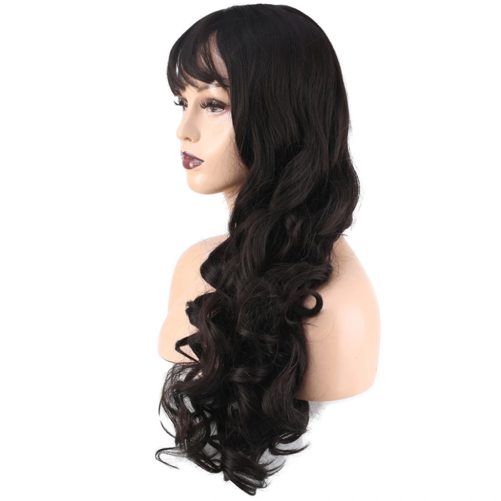 Dalgalı Perçemli Uzun Fiber Sentetik Peruk - Koyu Kahve