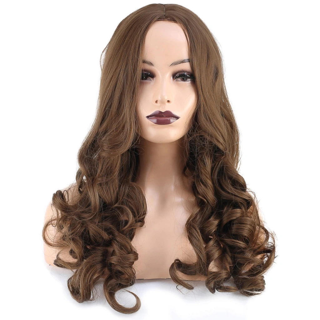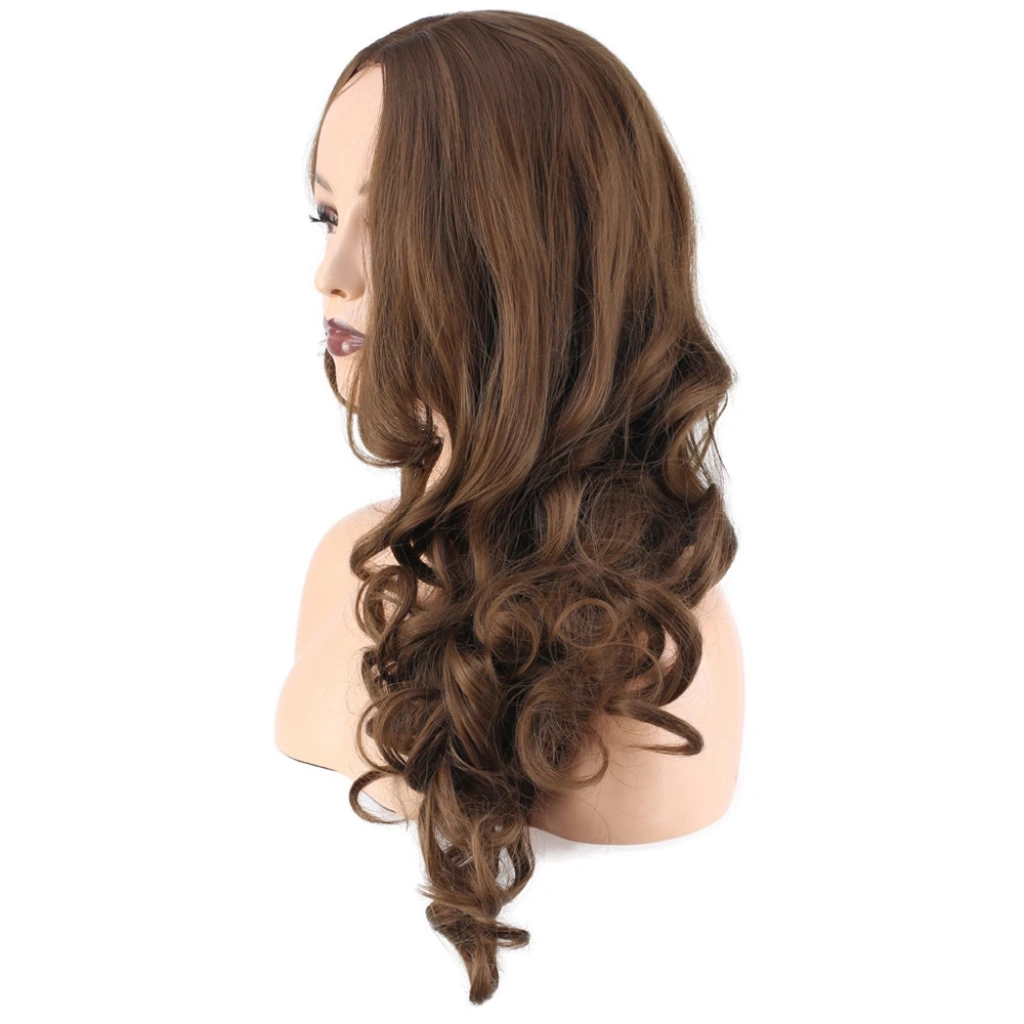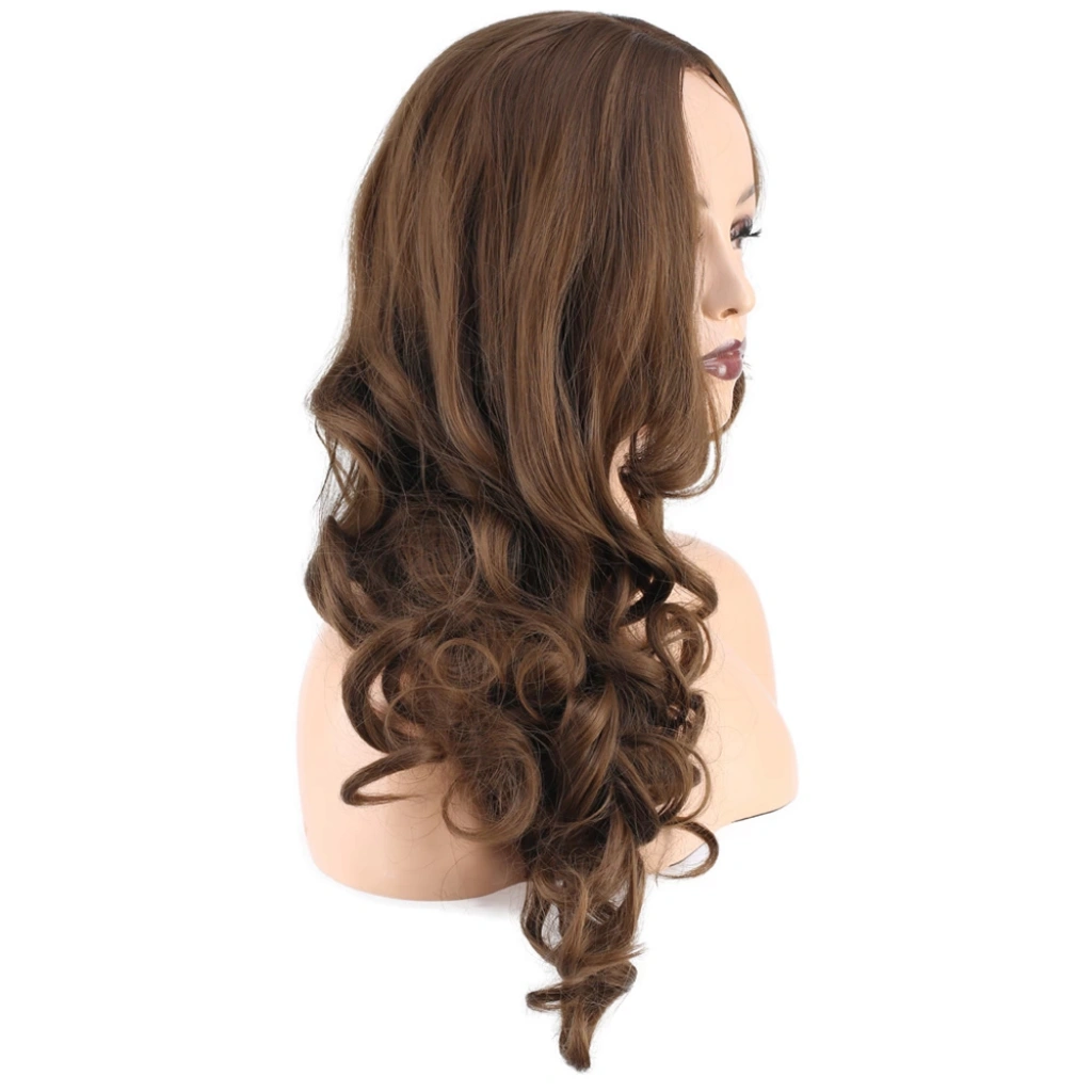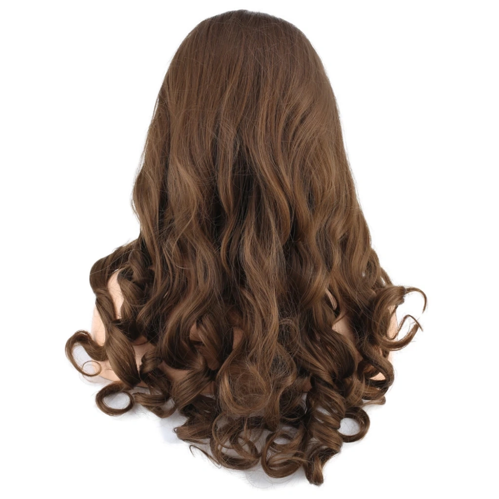 Dalgalı Perçemsiz Uzun Fiber Sentetik Peruk - Koyu Kumral