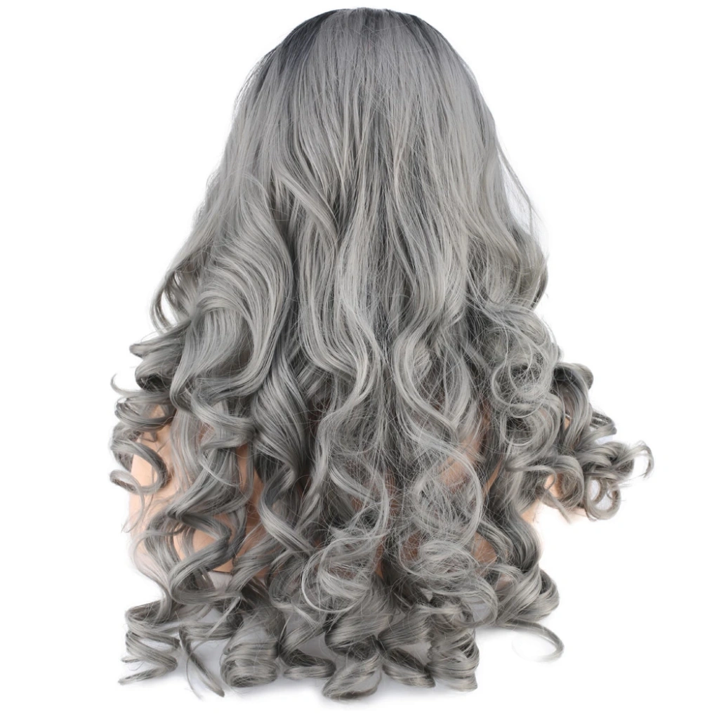 Dalgalı Perçemsiz Uzun Fiber Sentetik Peruk - Siyah / Gri Ombreli