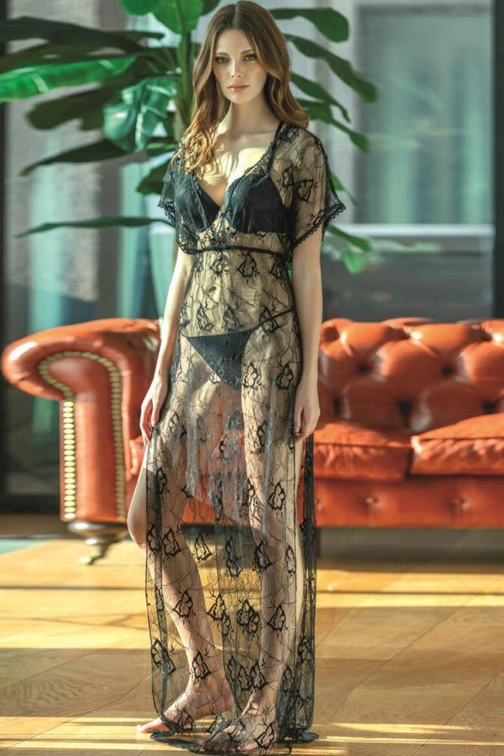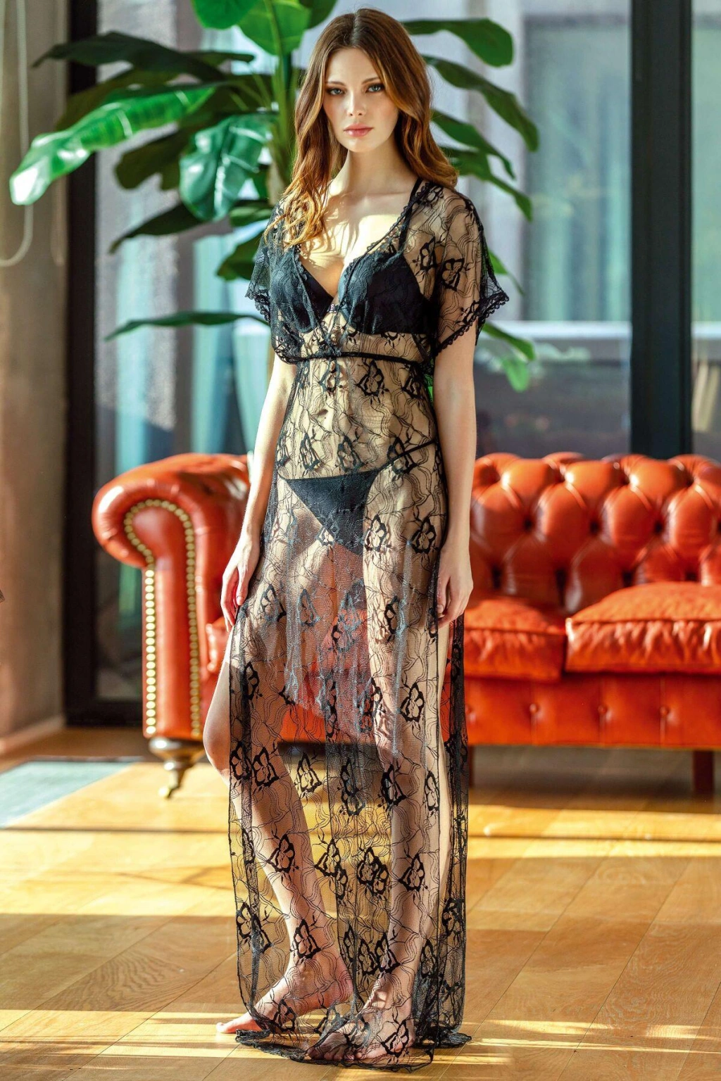 Dantelli Gecelik Balenli Destekli Dolgulu Önden Açılan Sütyen Ve String 3'lü Takım