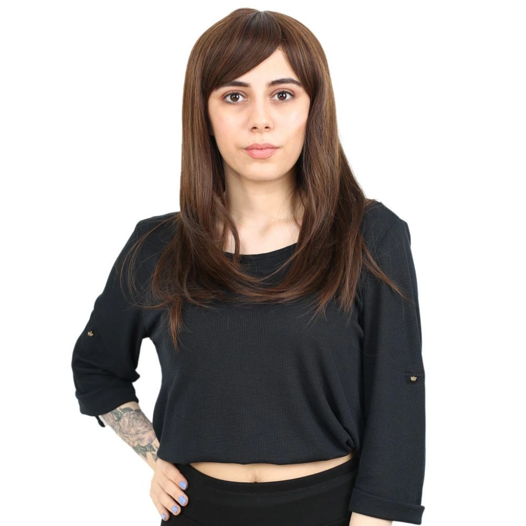 Dalgalı Perçemli Uzun Fiber Sentetik Peruk - Koyu Kumral