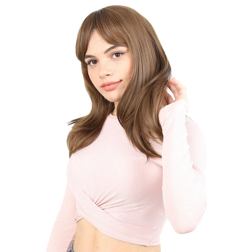 Dalgalı Perçemli Uzun Fiber Sentetik Peruk - Koyu Kumral