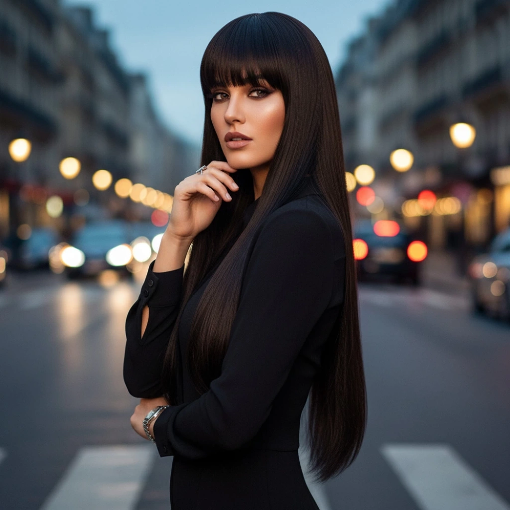 Dalgalı Perçemli Uzun Fiber Sentetik Peruk - Koyu Kestane