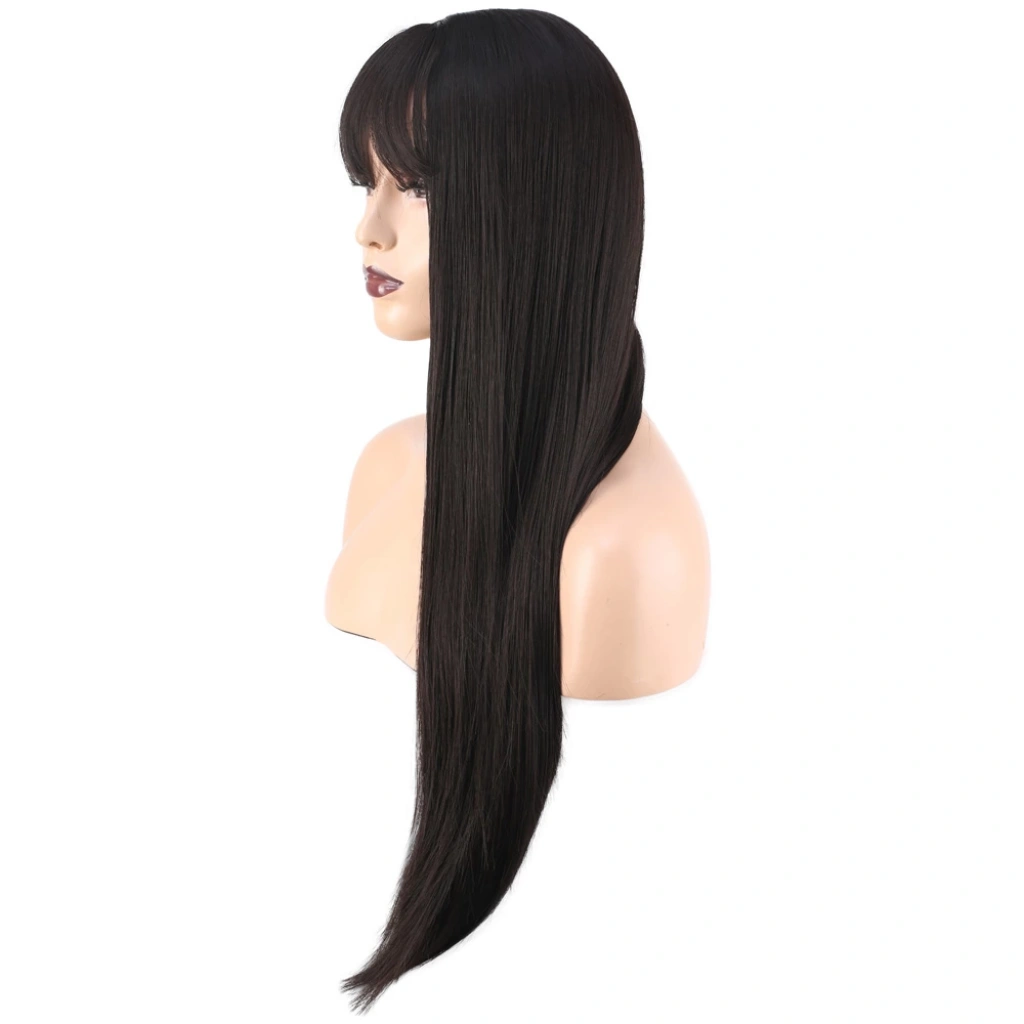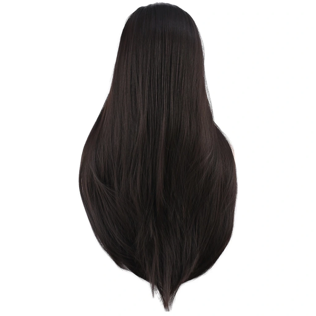 Düz Perçemli Uzun Fiber Sentetik Peruk - Kahverengi