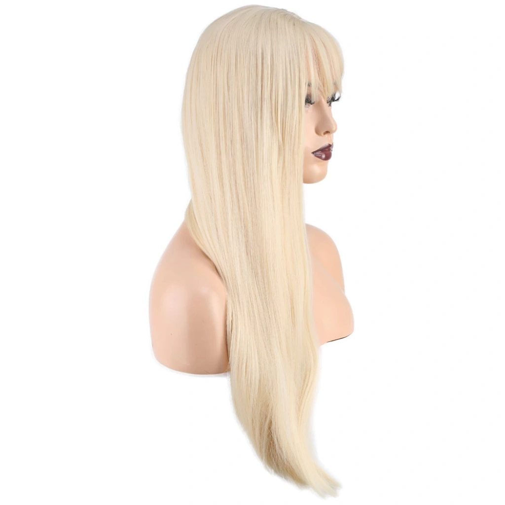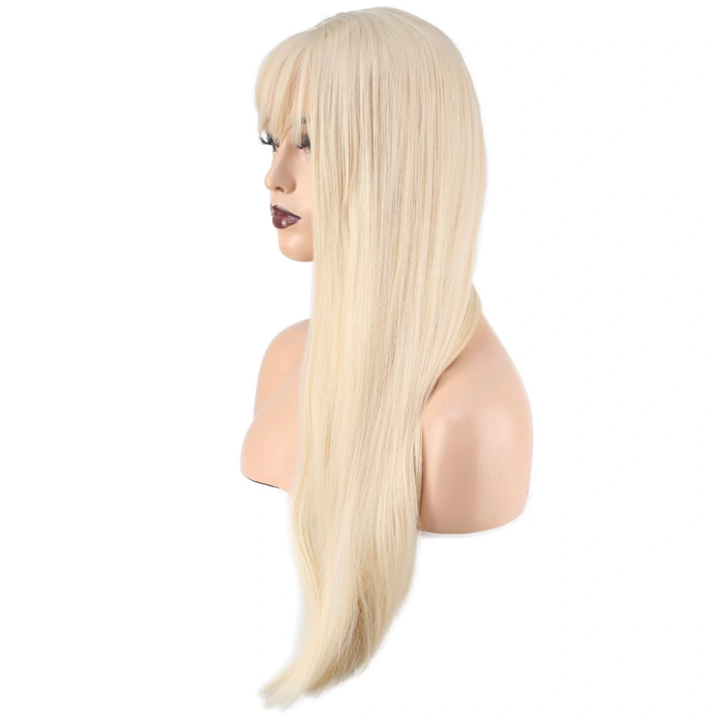 Düz Perçemli Uzun Fiber Sentetik Peruk - Platin