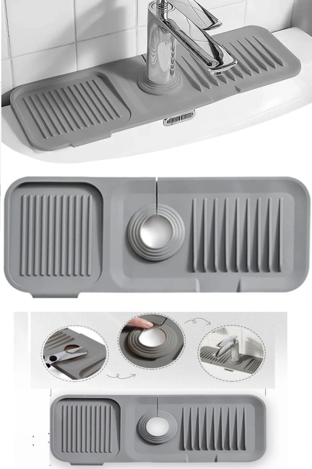 Elastik Mutfak Banyo Musluk Matı Düzenleyici Kaydırmaz Taban Organizer Lavabo Kenar Matı