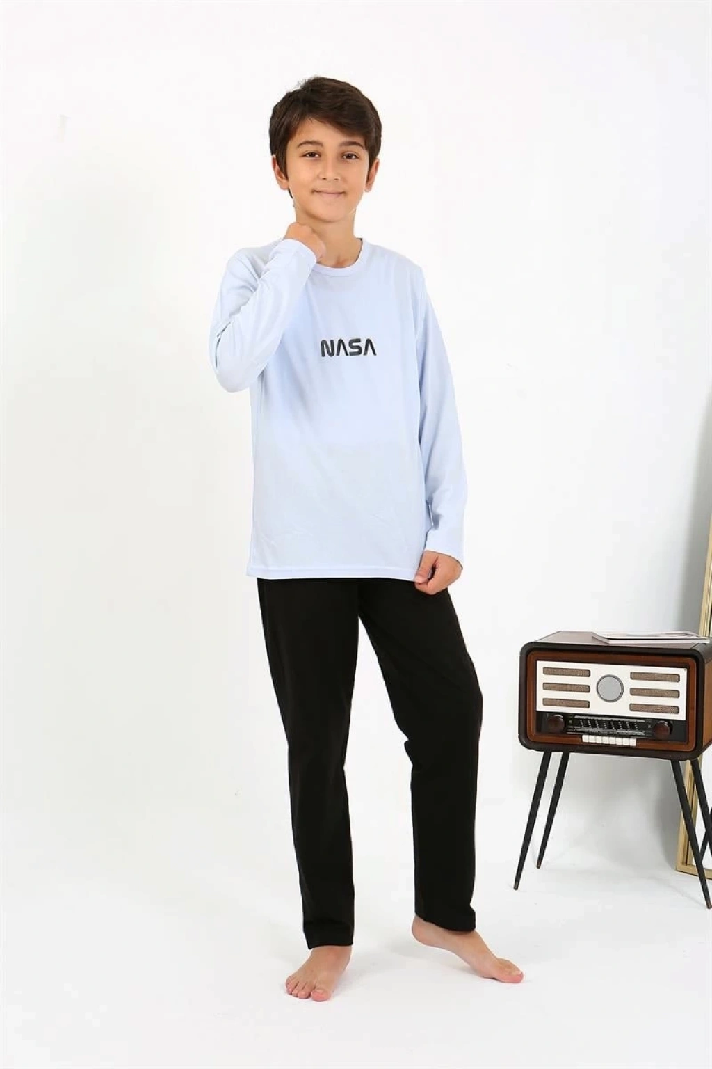 Çamaşır Kenti Erkek Çocuk Kısa Kol Penye Pijama Takımı Buz Mavisi, hem şık hem de rahat bir uyku deneyimi sunar.