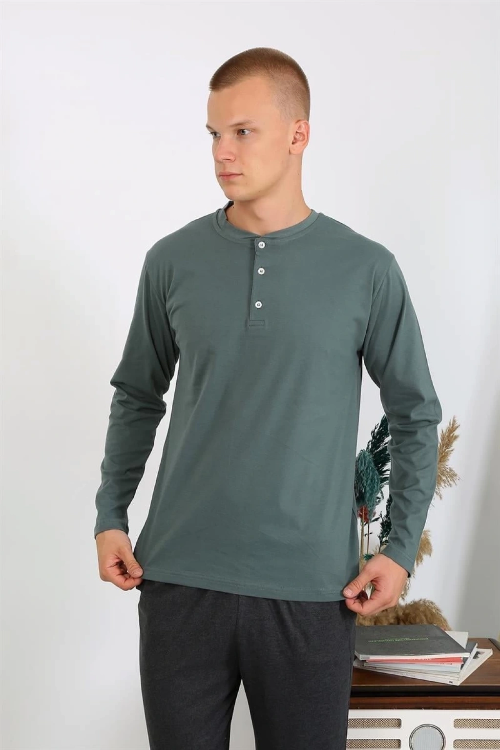 Erkek Penye Uzun Kol Pijama Takımı Haki ile şıklığı ve konforu bir arada yaşamak için hemen sepetinize ekleyin!