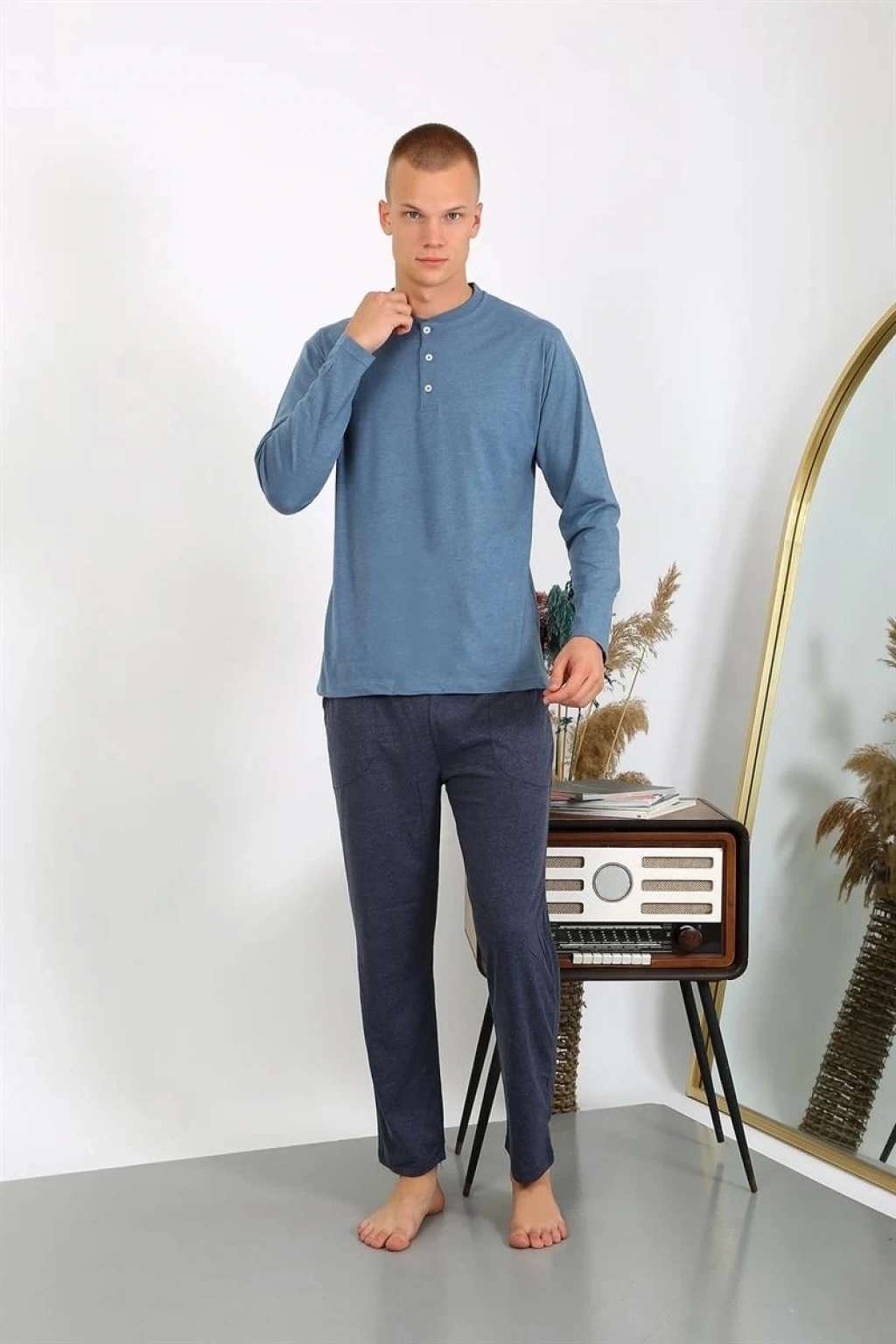 Erkek Penye Uzun Kol Pijama Takımı İndigo ile şıklığı ve konforu bir arada yaşamak için hemen sepetinize ekleyin!