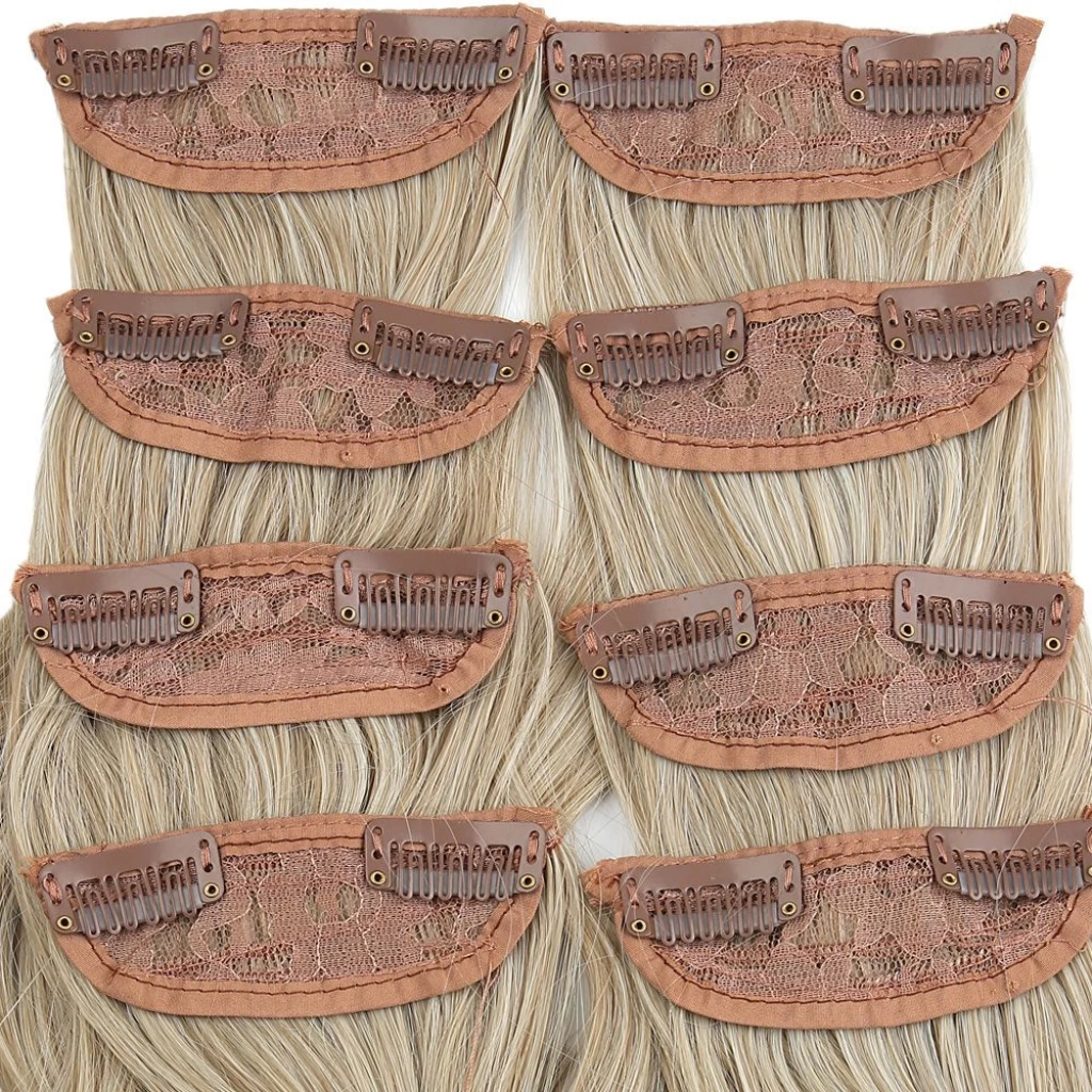 Fiber Sentetik Düz 8 Parça Çıt Çıt - Kumral Beyaz Platin Röfleli