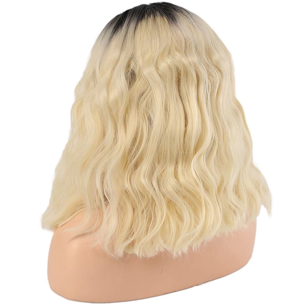 Fiber Sentetik Dalgalı Kısa Tül Peruk - Kahve Platin Ombreli