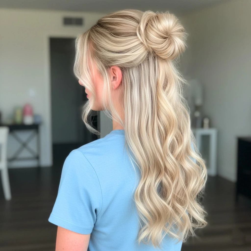 Fiber Sentetik Kabarık Dalgalı Yarım Ay + 2 Yan Çıt Çıt - Kumral Beyaz Platin Röfleli
