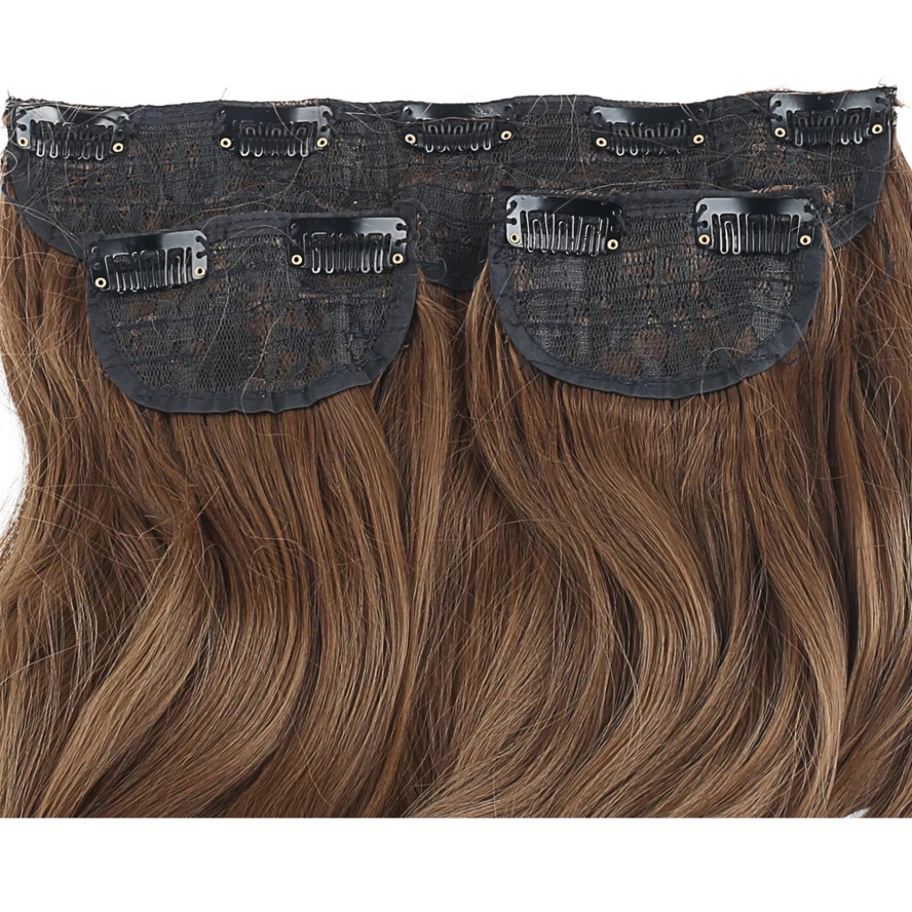 Fiber Sentetik Kabarık Dalgalı Yarım Ay + 2 Yan Çıt Çıt - Koyu Kumral Platin Ombreli
