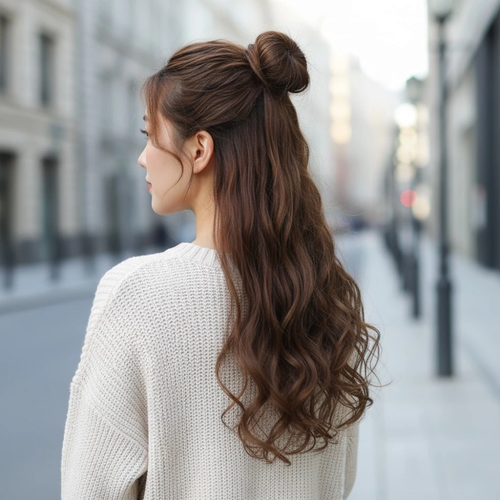 Fiber Sentetik Kabarık Dalgalı Yarım Ay + 2 Yan Çıt Çıt - Kumral