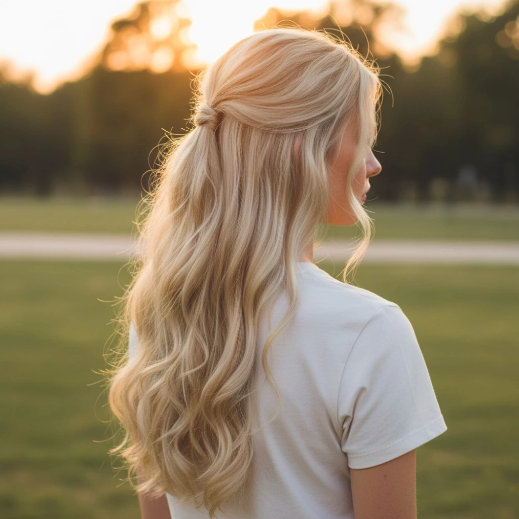 Fiber Sentetik Kabarık Dalgalı Yarım Ay + 2 Yan Çıt Çıt - Kumral Beyaz Platin Röfleli