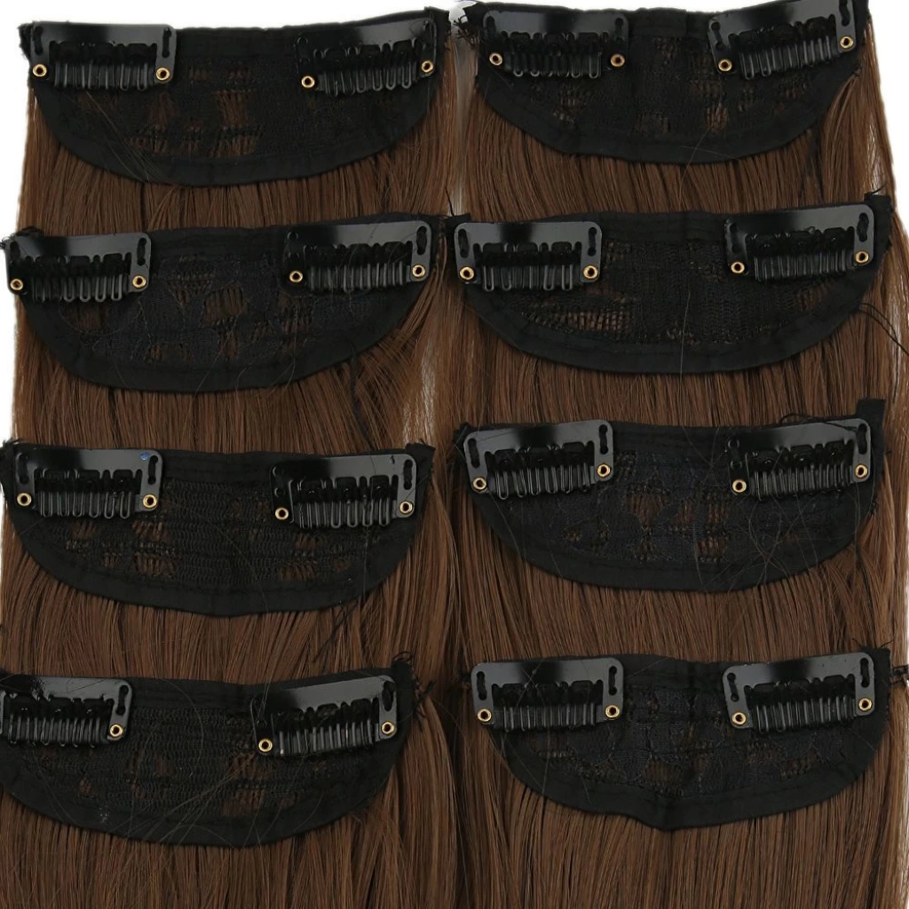Fiber Sentetik Düz 8 Parça Çıt Çıt - Kumral Beyaz Platin Röfleli