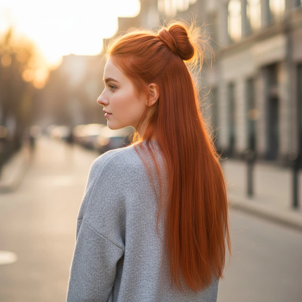 Fiber Sentetik Kabarık Dalgalı Yarım Ay + 2 Yan Çıt Çıt - Kumral
