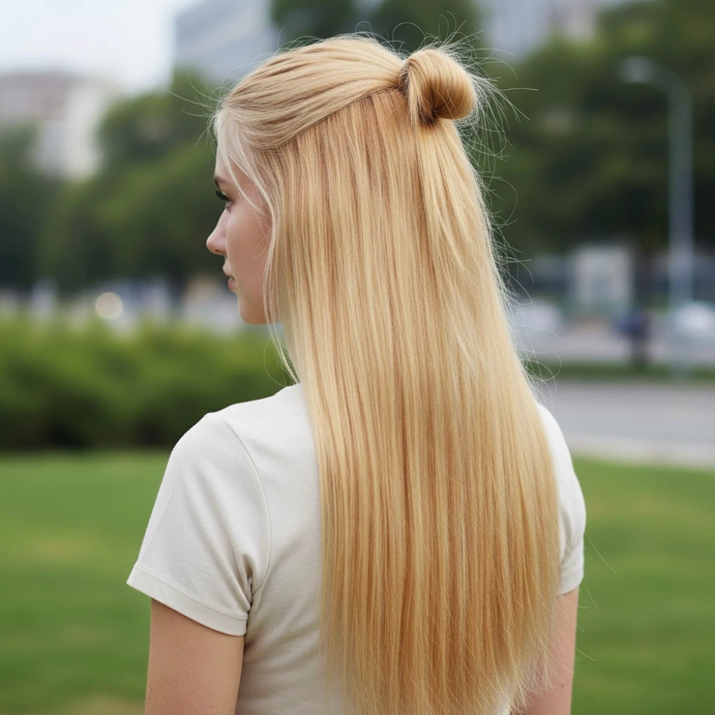 Fiber Sentetik Kabarık Dalgalı Yarım Ay + 2 Yan Çıt Çıt - Kumral Beyaz Platin Röfleli