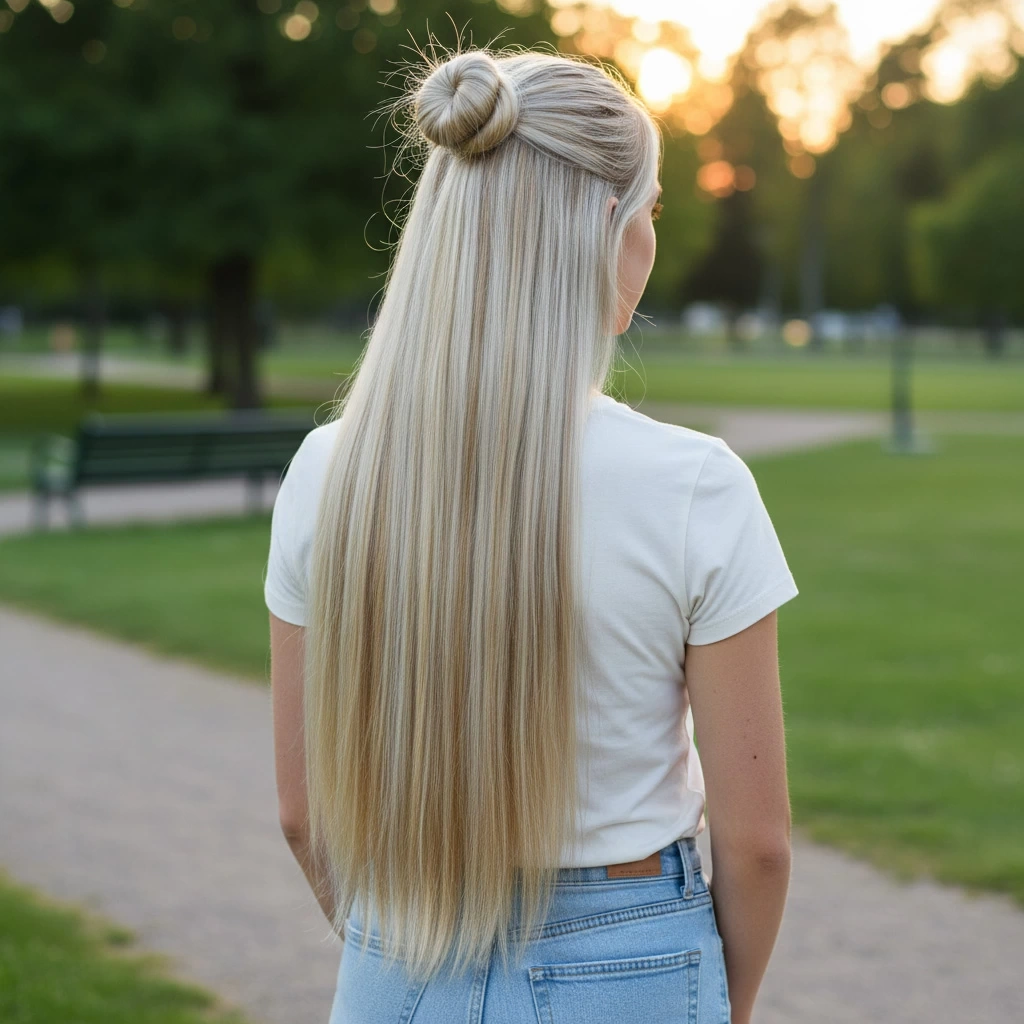 Fiber Sentetik Kabarık Dalgalı Yarım Ay + 2 Yan Çıt Çıt - Kumral Beyaz Platin Röfleli