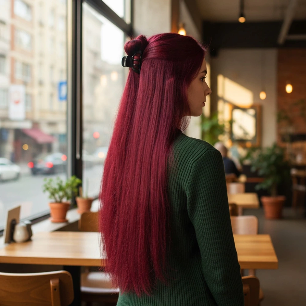Fiber Sentetik Düz Yarım Ay + 2 Yan Çıt Çıt - Kızıl
