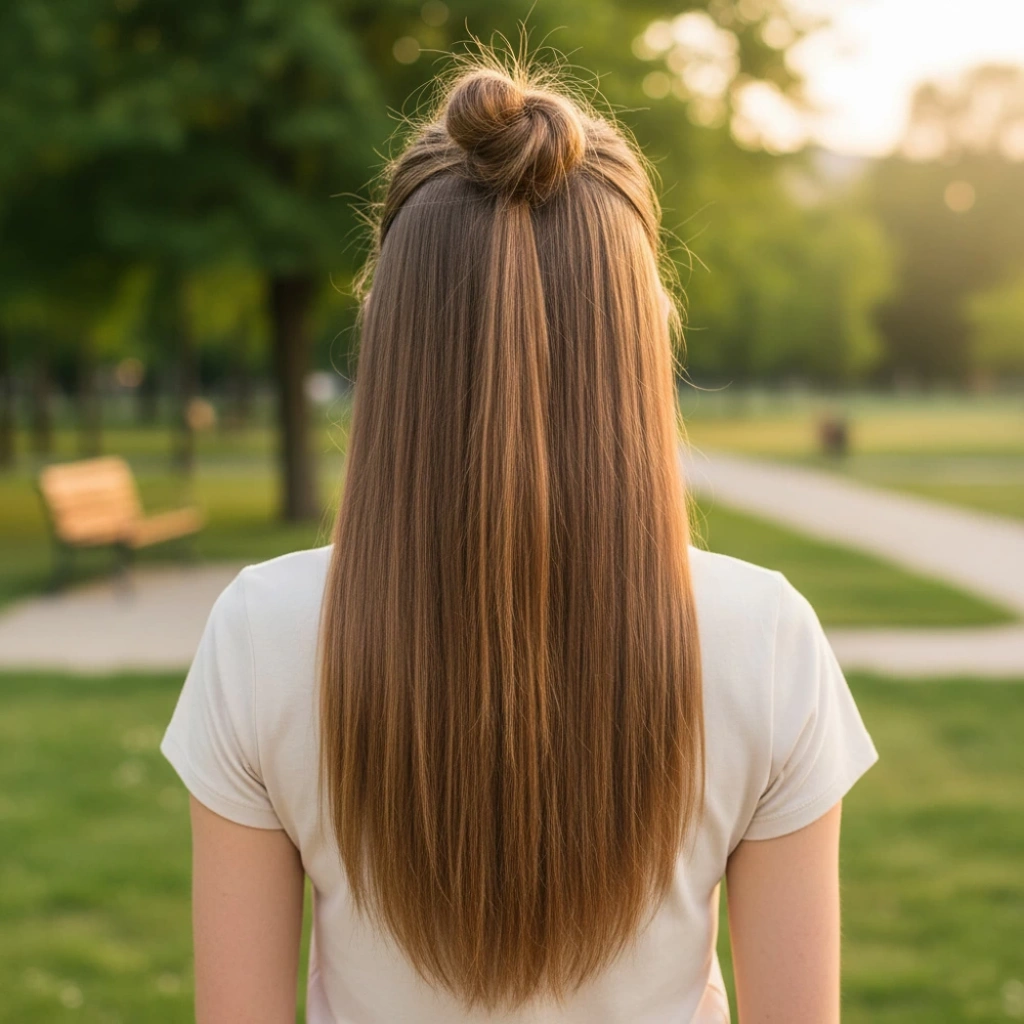 Fiber Sentetik Kabarık Dalgalı Yarım Ay + 2 Yan Çıt Çıt - Kumral