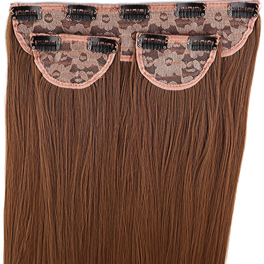 Fiber Sentetik Kabarık Dalgalı Yarım Ay + 2 Yan Çıt Çıt - Koyu Kumral Platin Ombreli
