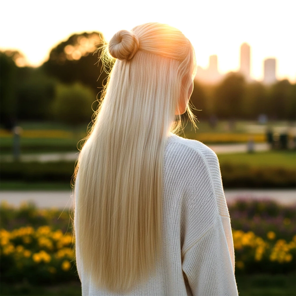 Fiber Sentetik Kabarık Dalgalı Yarım Ay + 2 Yan Çıt Çıt - Kumral Beyaz Platin Röfleli