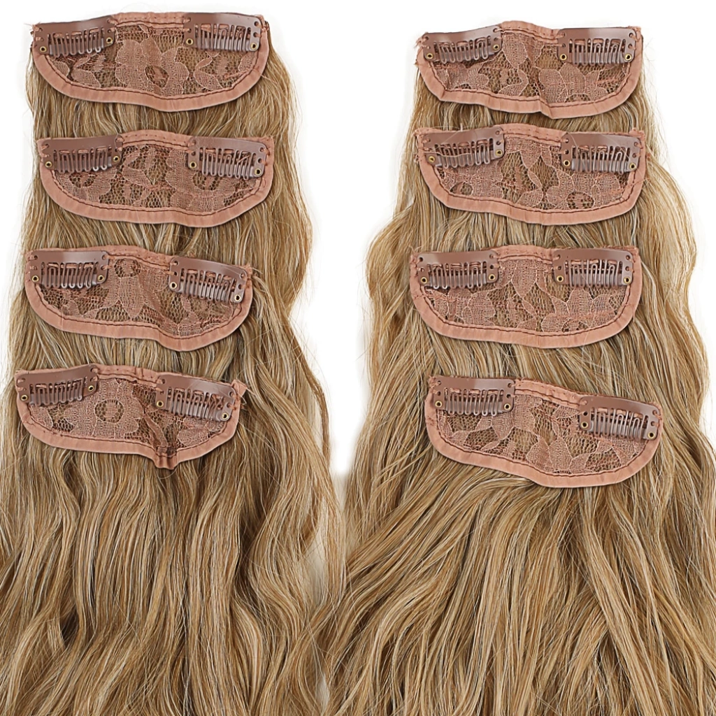 Fiber Sentetik Düz 8 Parça Çıt Çıt - Kumral Beyaz Platin Röfleli