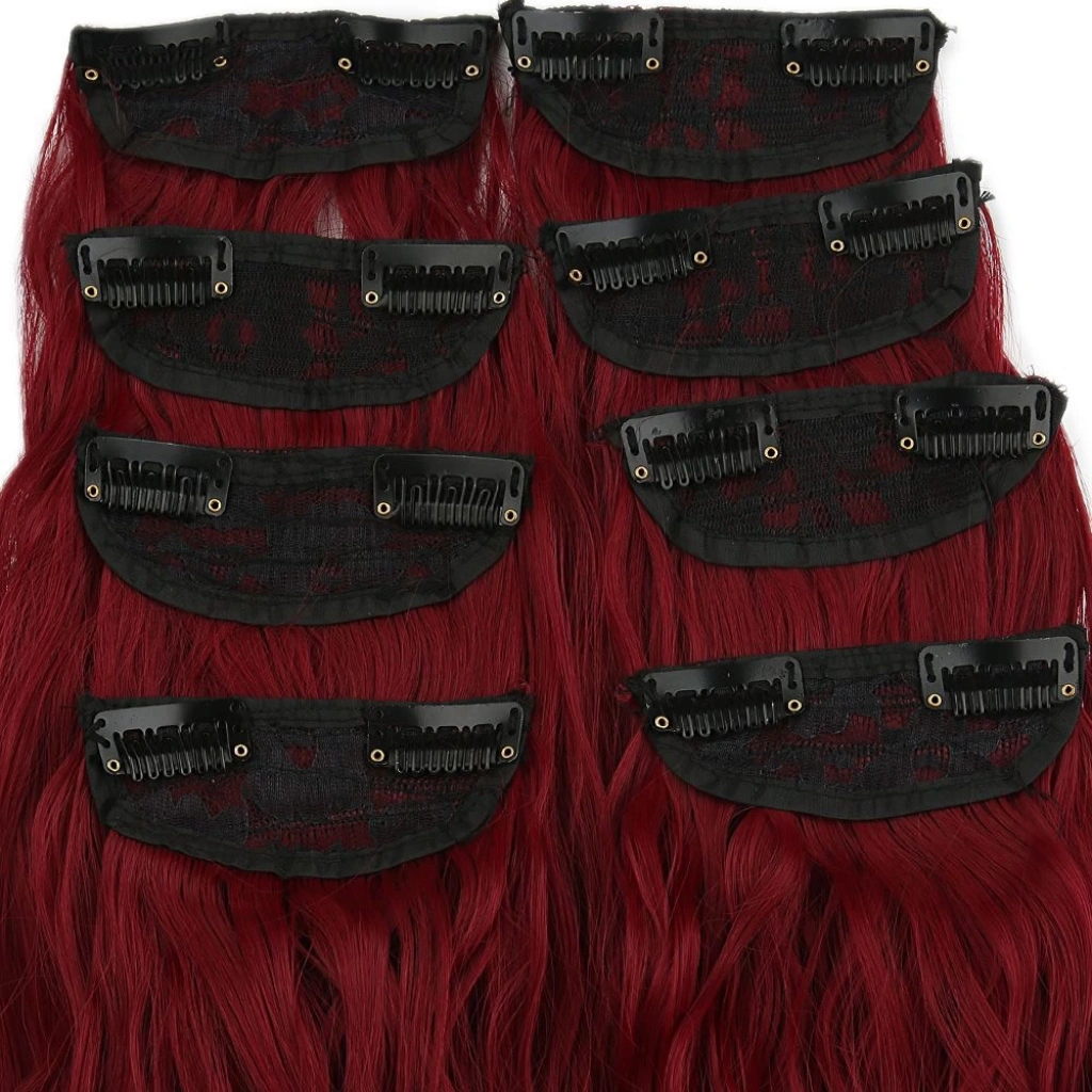 Fiber Sentetik Dalgalı 8 Parça Çıt Çıt - Koyu Kızıl