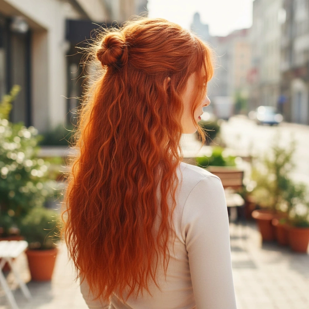 Fiber Sentetik Kabarık Dalgalı Yarım Ay + 2 Yan Çıt Çıt - Bakır