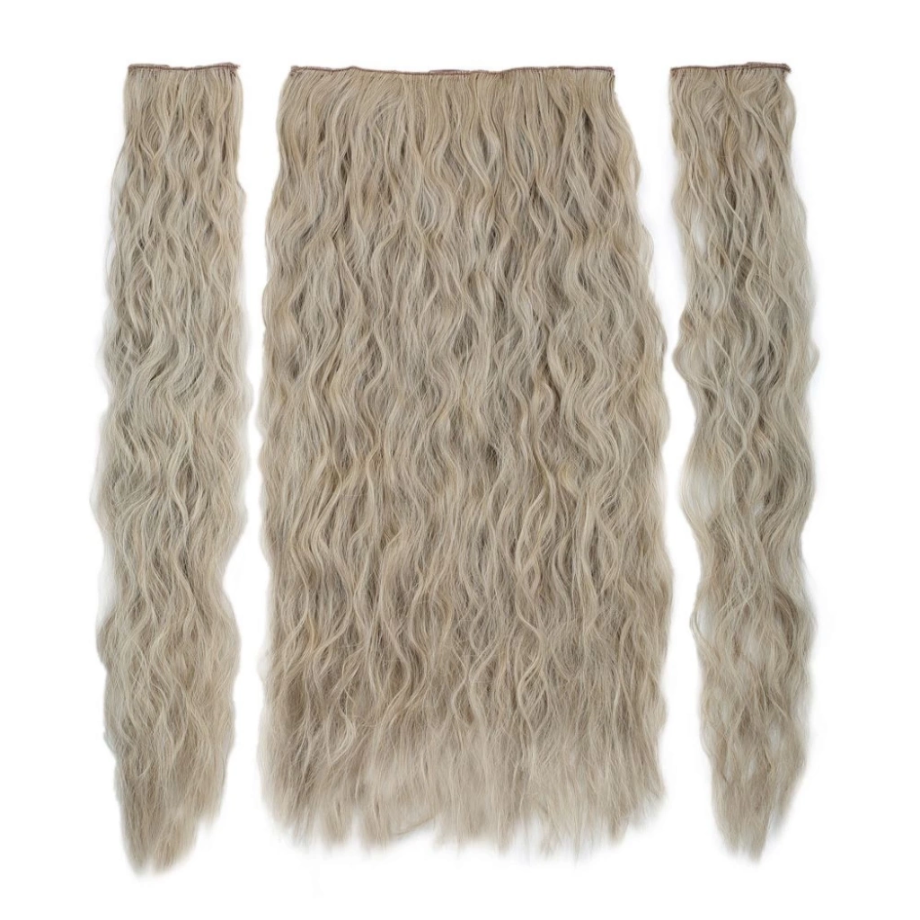 Fiber Sentetik Kabarık Dalgalı Yarım Ay + 2 Yan Çıt Çıt - Kumral Beyaz Platin Röfleli