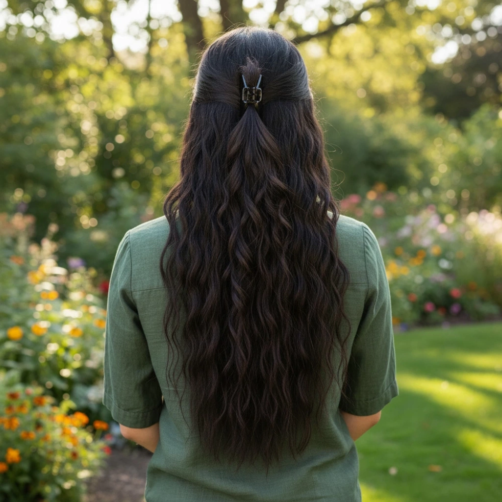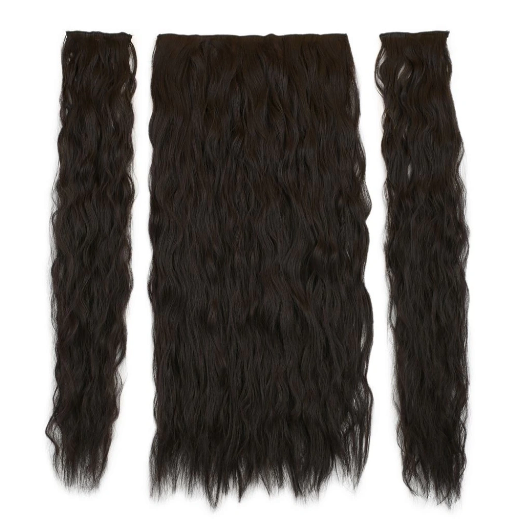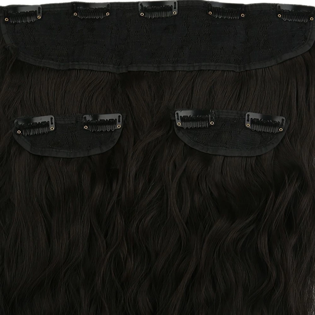 Fiber Sentetik Kabarık Dalgalı Yarım Ay + 2 Yan Çıt Çıt - Koyu Kahve