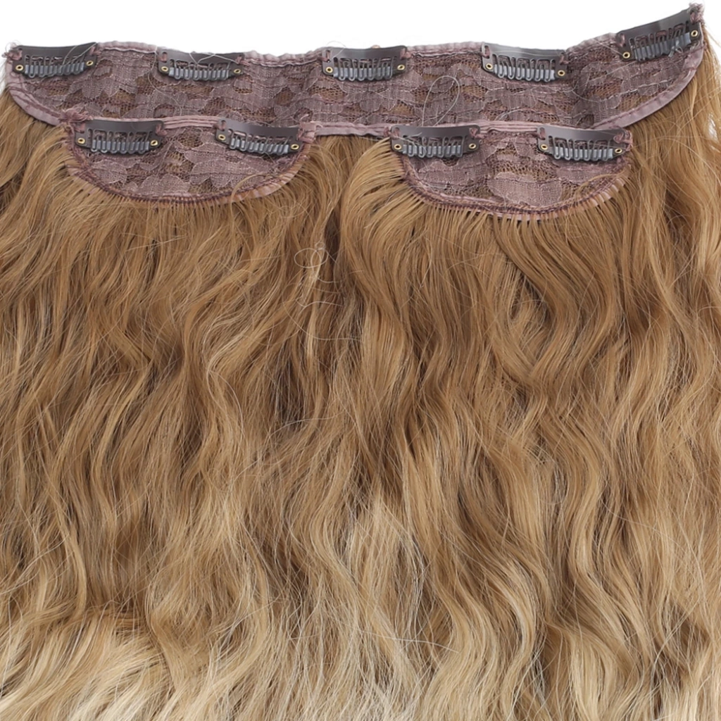 Fiber Sentetik Kabarık Dalgalı Yarım Ay + 2 Yan Çıt Çıt - Kumral Platin Ombreli