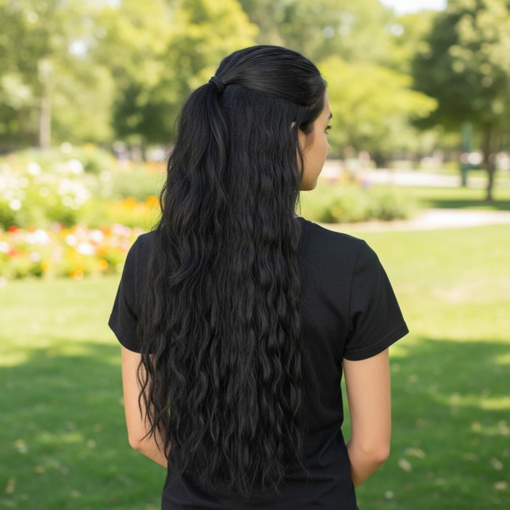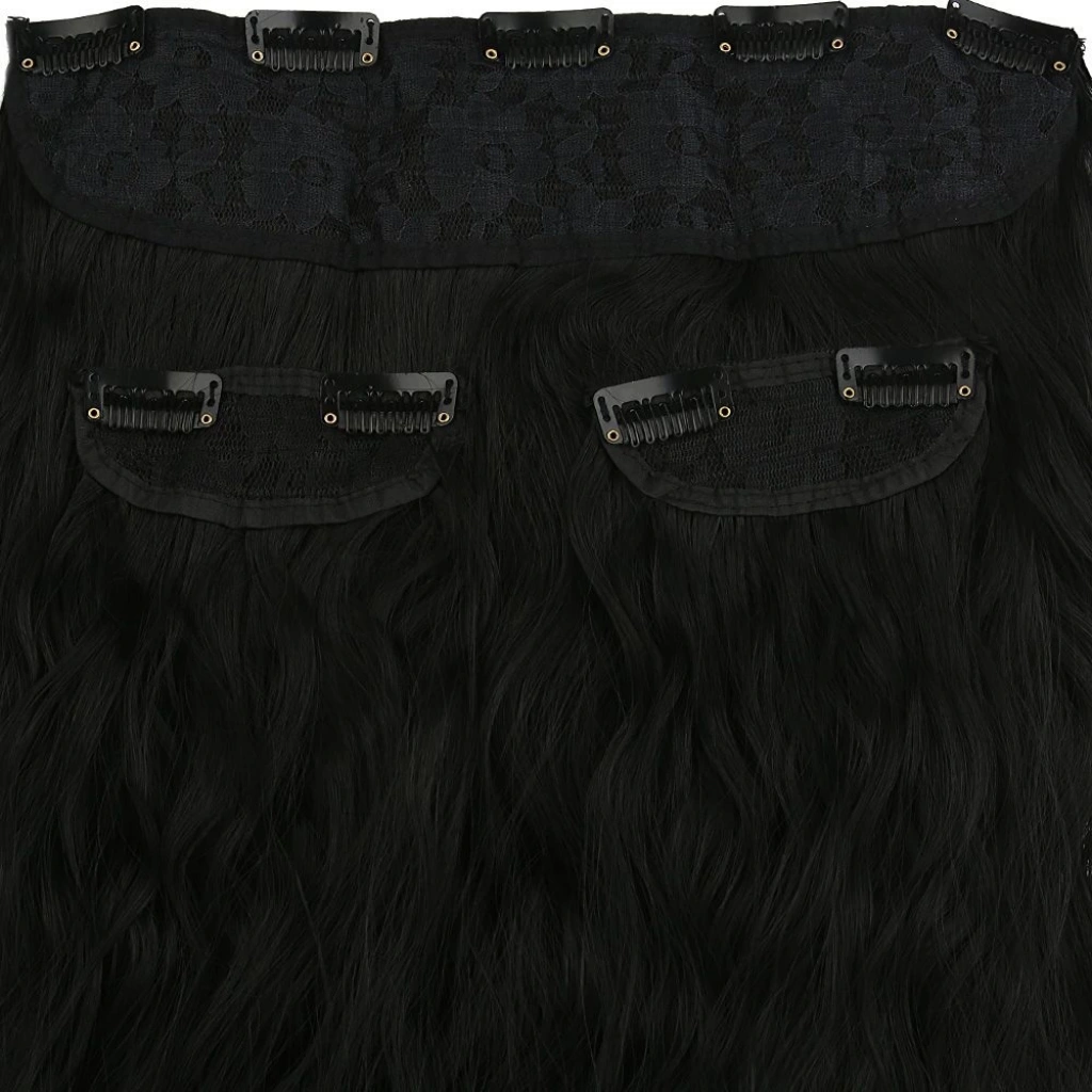 Fiber Sentetik Kabarık Dalgalı Yarım Ay + 2 Yan Çıt Çıt - Siyah
