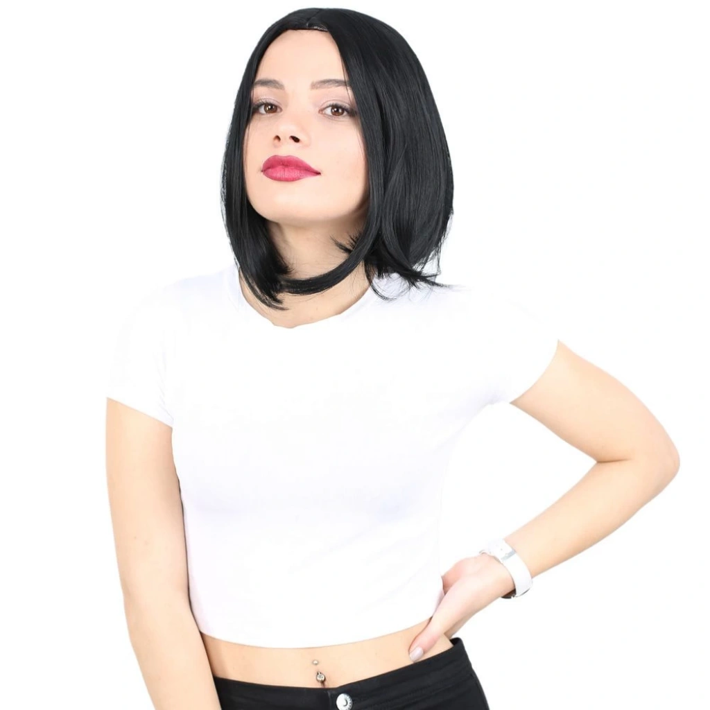 Fiber Sentetik Peruk Perçemsiz Kısa Düz - Siyah