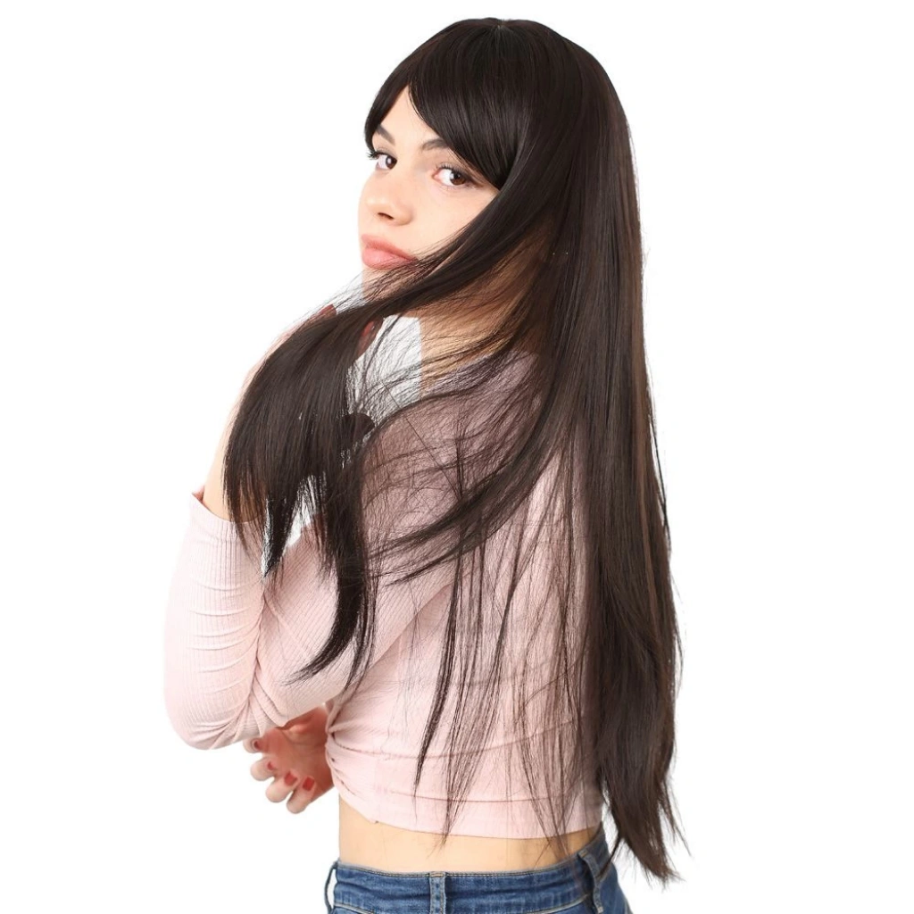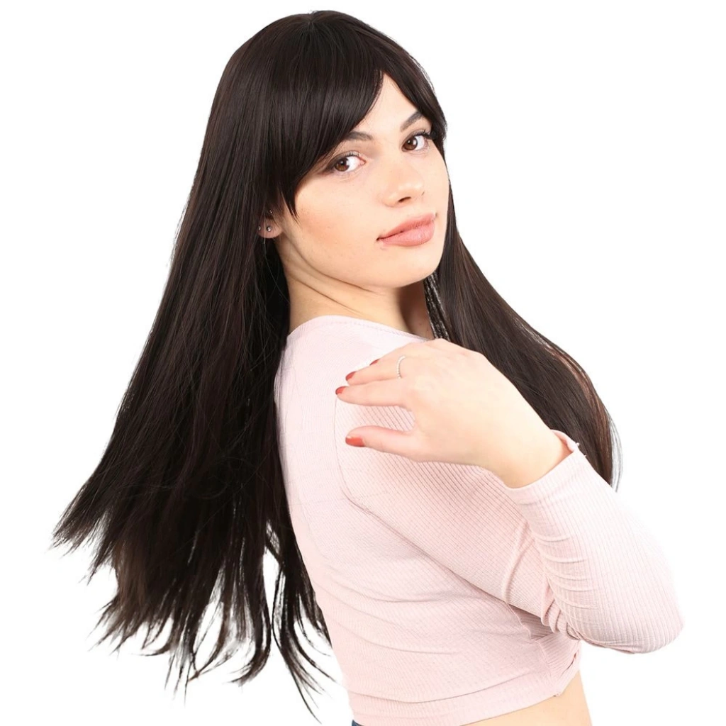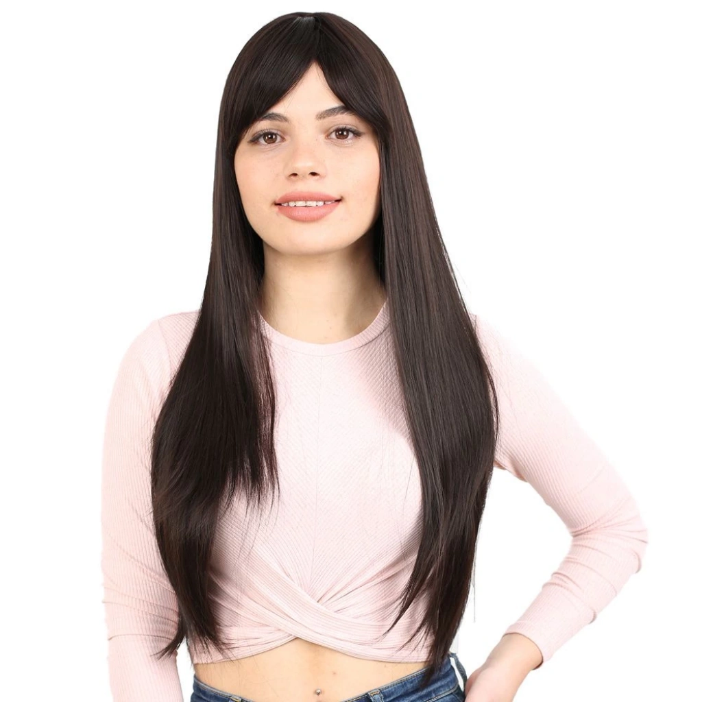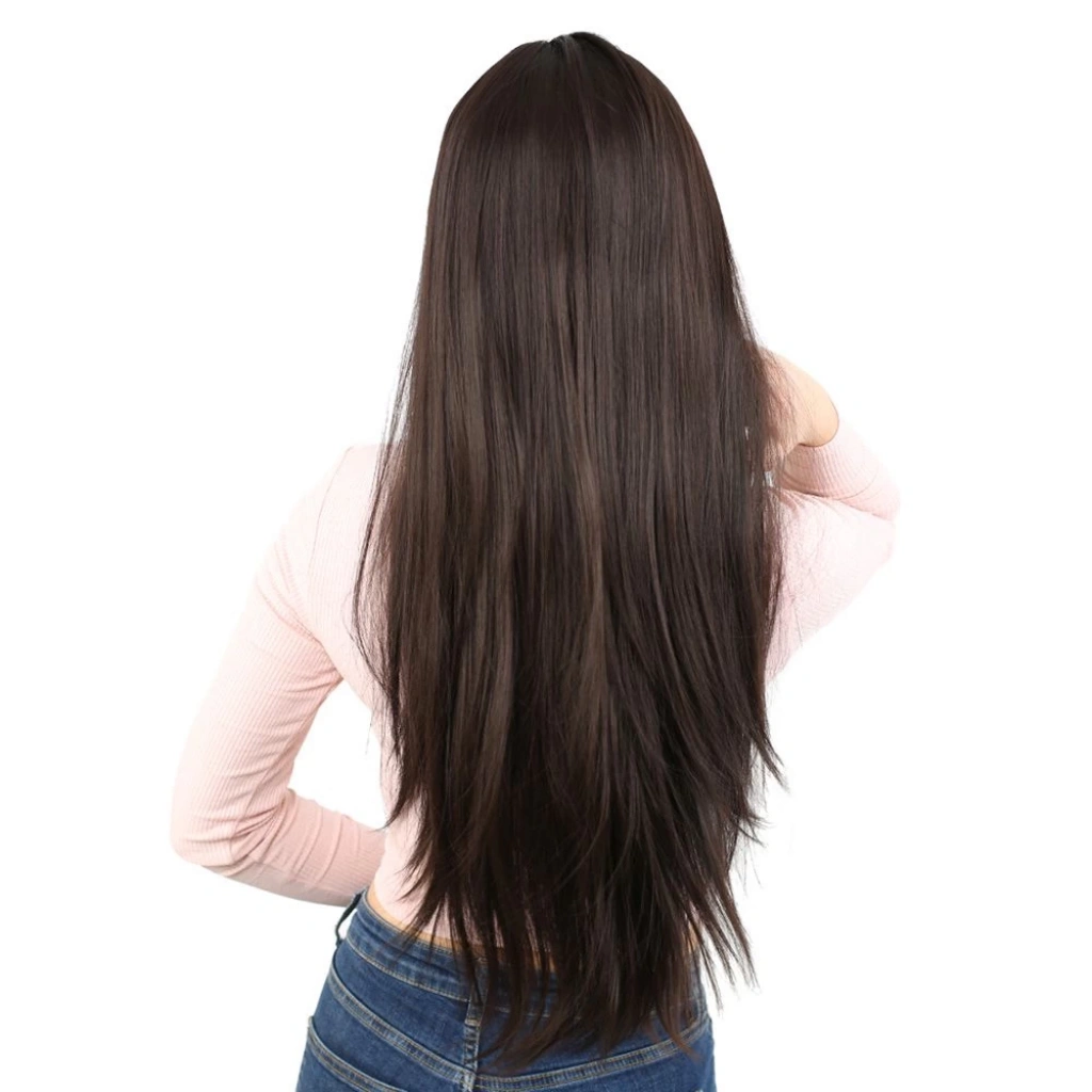 Fiber Sentetik Uzun Düz Kahküllü Peruk - Kahverengi