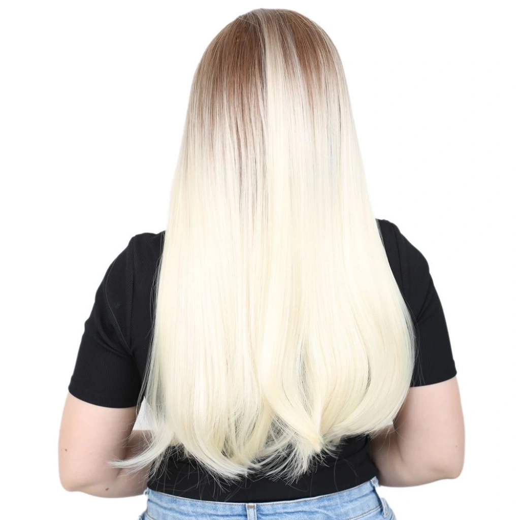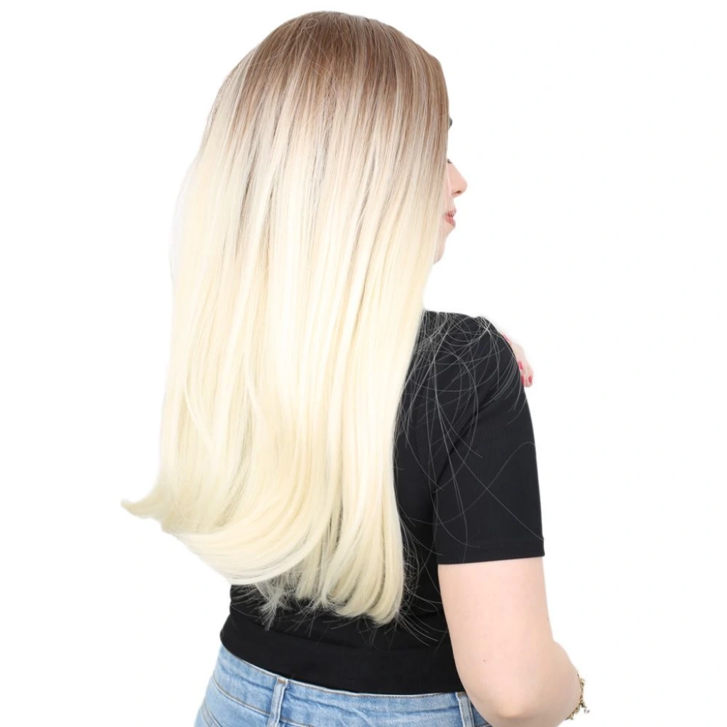 Fiber Sentetik Uzun Düz Peruk - Kumral / Platin Ombreli