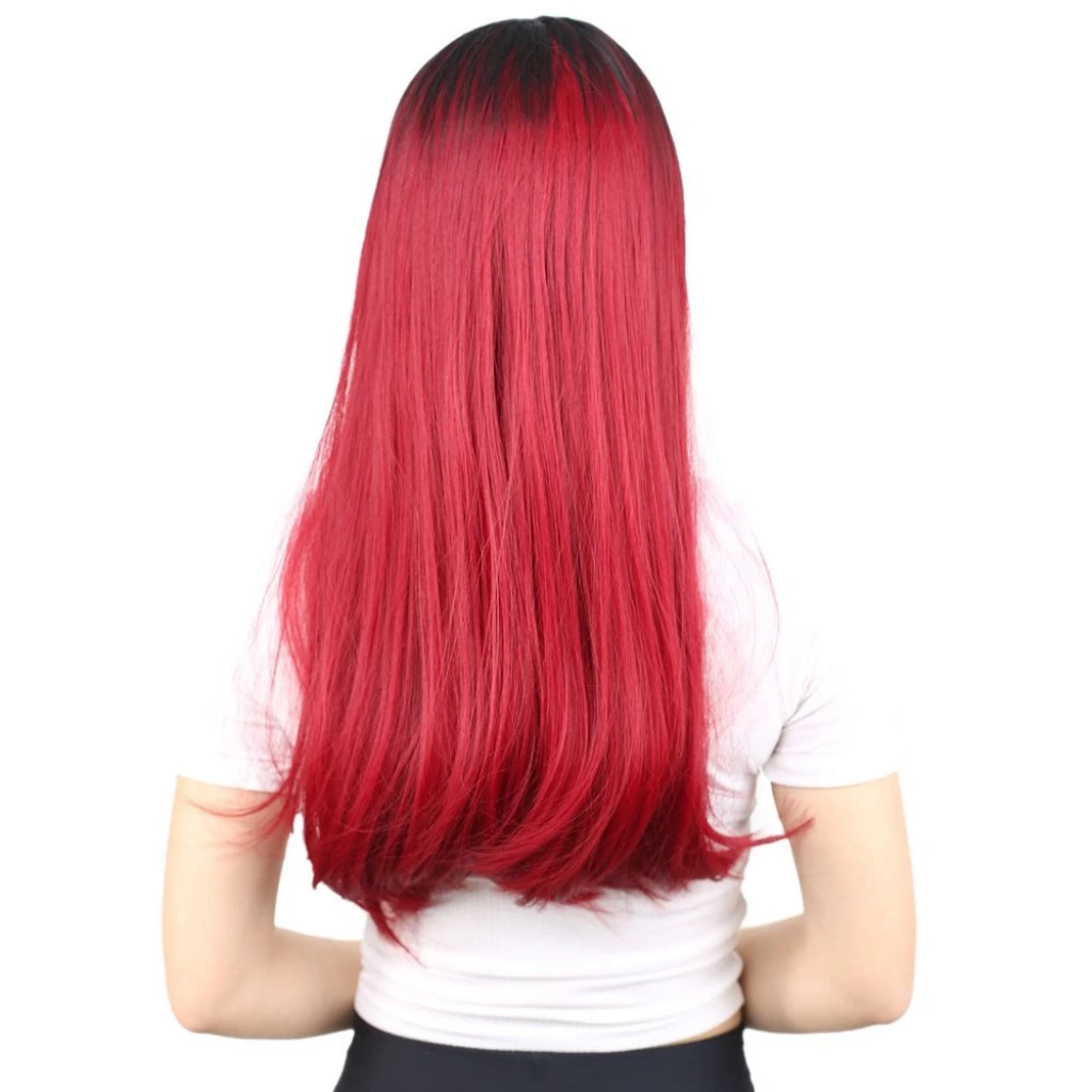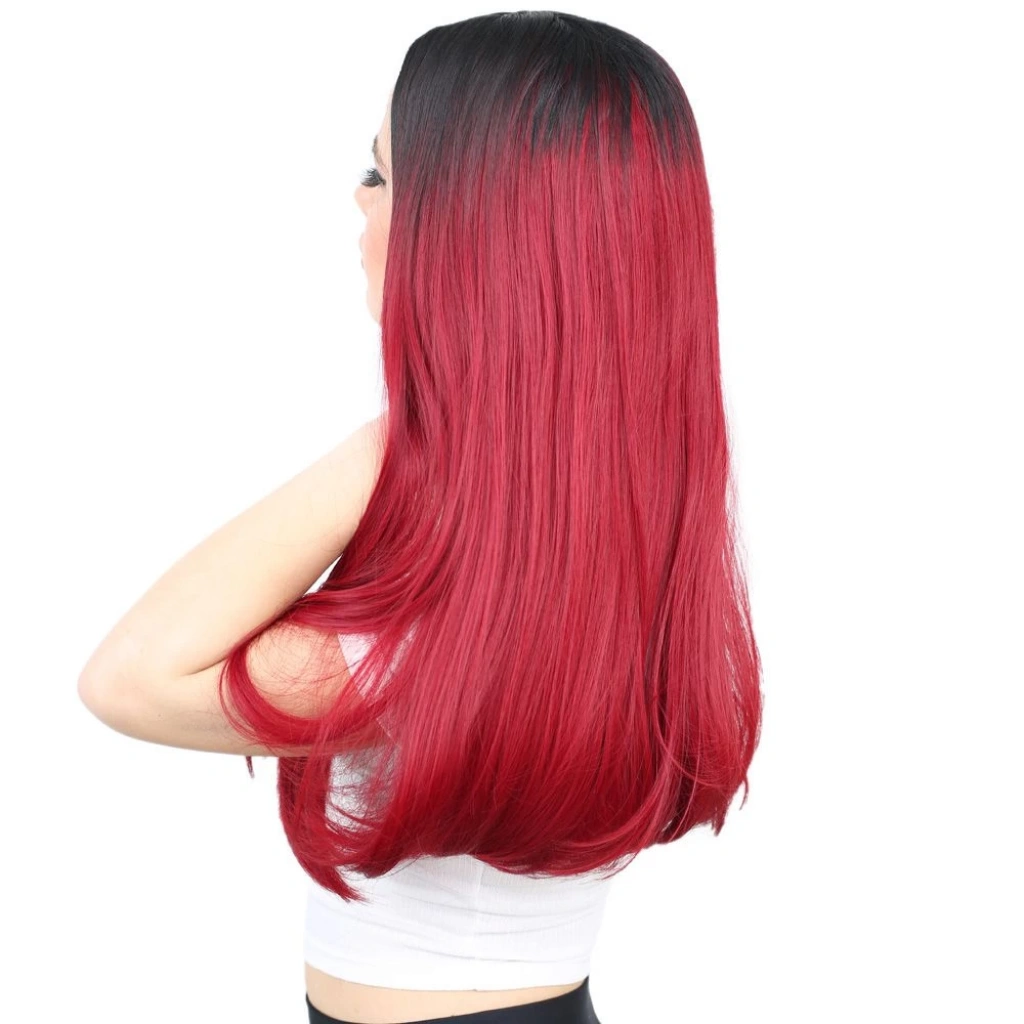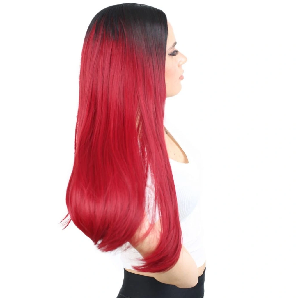 Fiber Sentetik Uzun Düz Peruk - Siyah / Kızıl Ombreli
