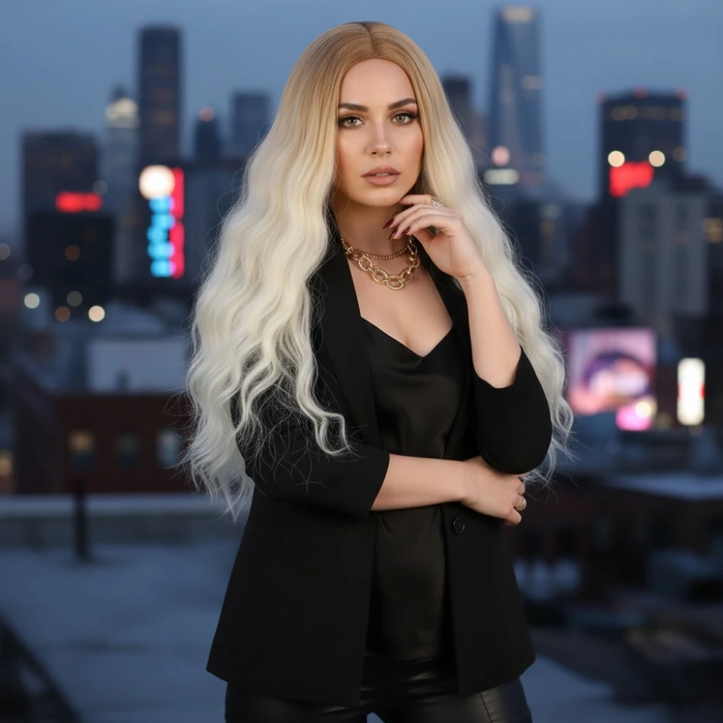 Fiber Sentetik Uzun Su Dalgası Peruk - Balköpüğü / Platin Uzun Ombreli