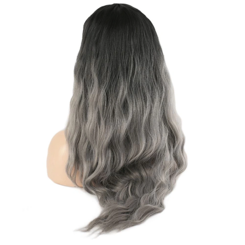 Fiber Sentetik Uzun Su Dalgası Peruk - Siyah Gri Ombreli