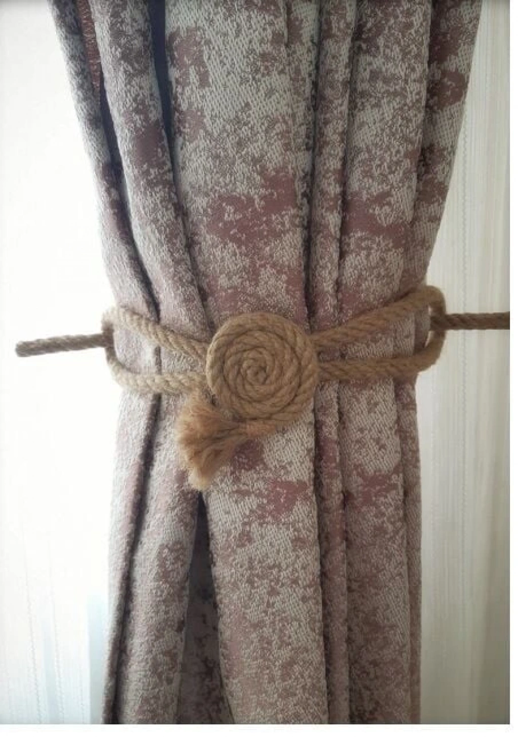 Spiral Jüt Halat: Doğal ve rustik bir atmosfer yaratmak isteyenler için spiral jüt halatlar ideal. Perdelerinizi bu halatlarla bağlayarak hoş bir dokunuş ekleyin