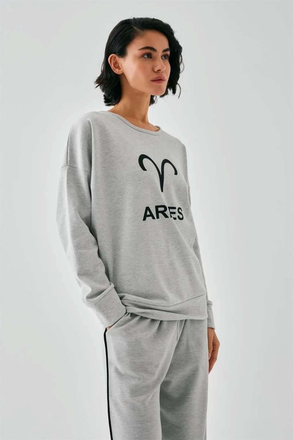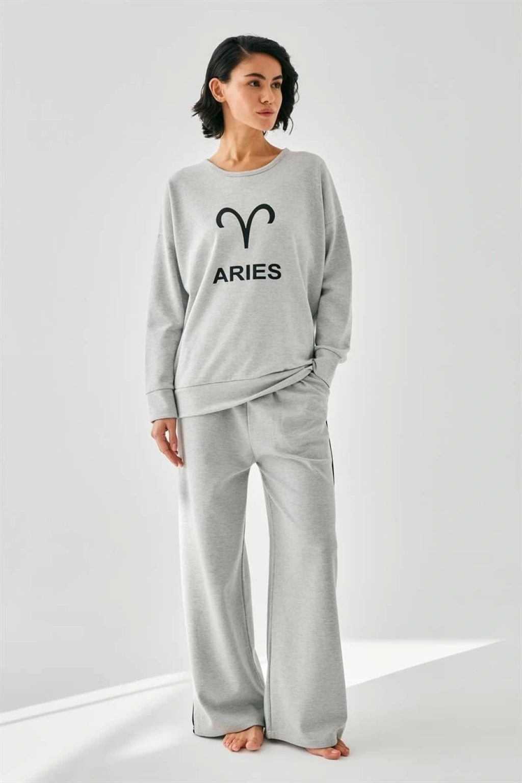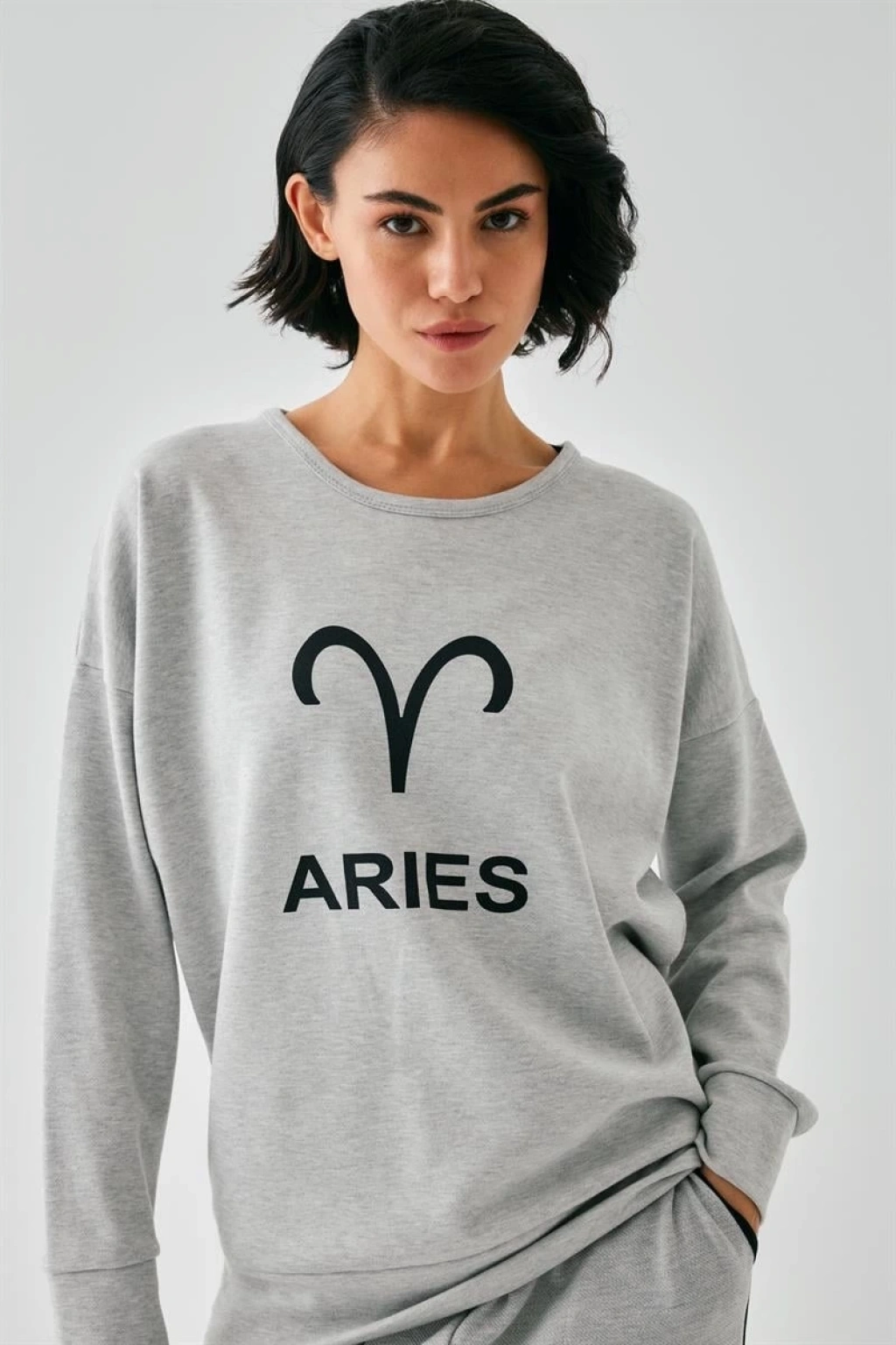Çamaşır Kenti markasının özel koleksiyonundan, Kadın Gri Koç Burcu Oversize 2 İplik Eşofman Ev Giyim Takımı ile rahatlığı ve şıklığı bir arada yaşayacaksınız.