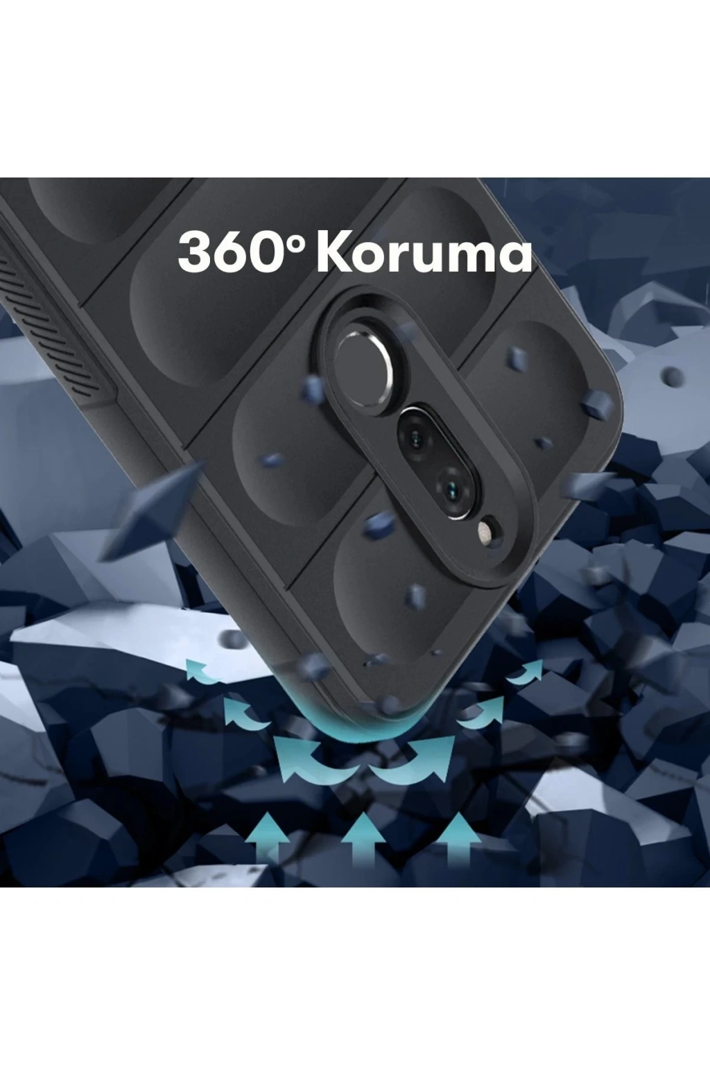 Yumuşak silikon gövde, cihazın arka kısmını ve köşelerini sıkıca sararak olası düşme ve çarpmalarda şok emici bir yapı sunar. Günlük kullanımda oluşabilecek tüm risklere karşı dayanıklı bir kalkan görevi görür.