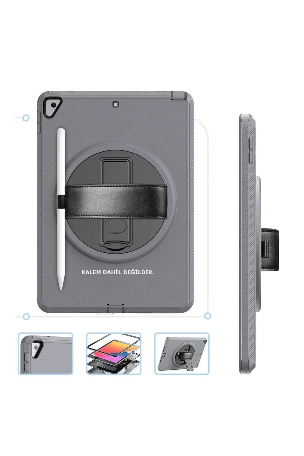 iPad 10.2 (7.nesil) Kılıf Hand Strap Tablet Kılıfı - Gri